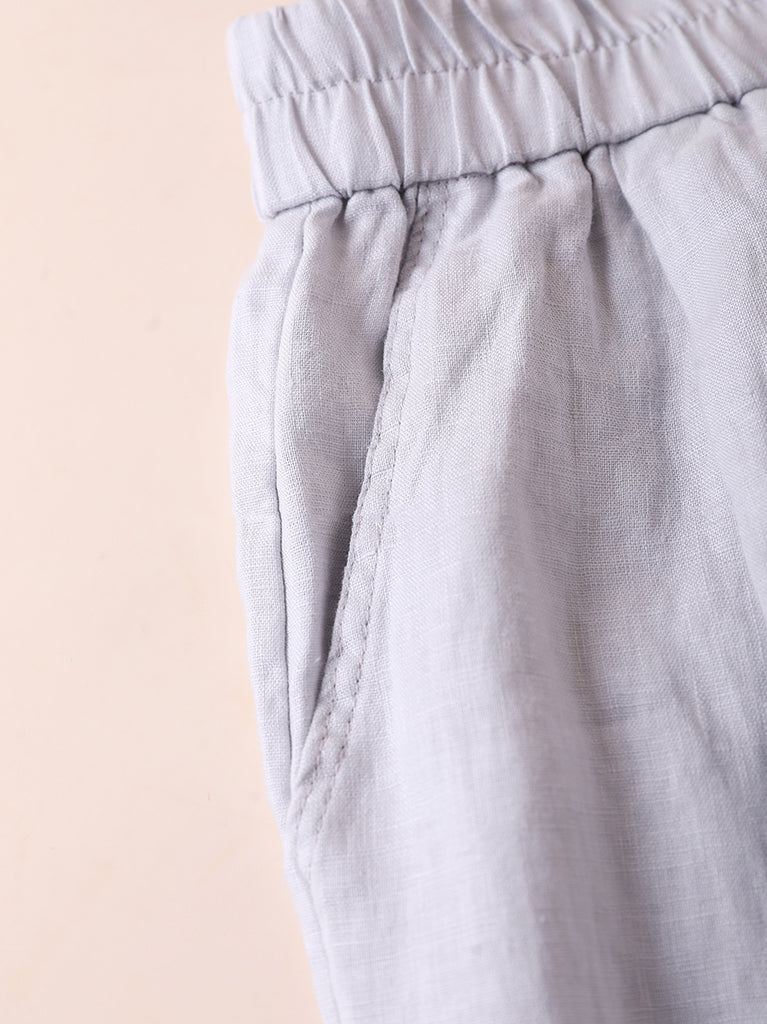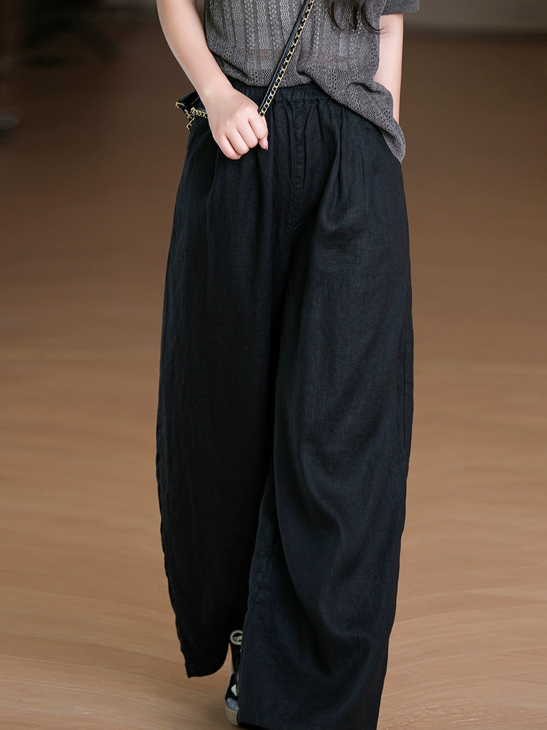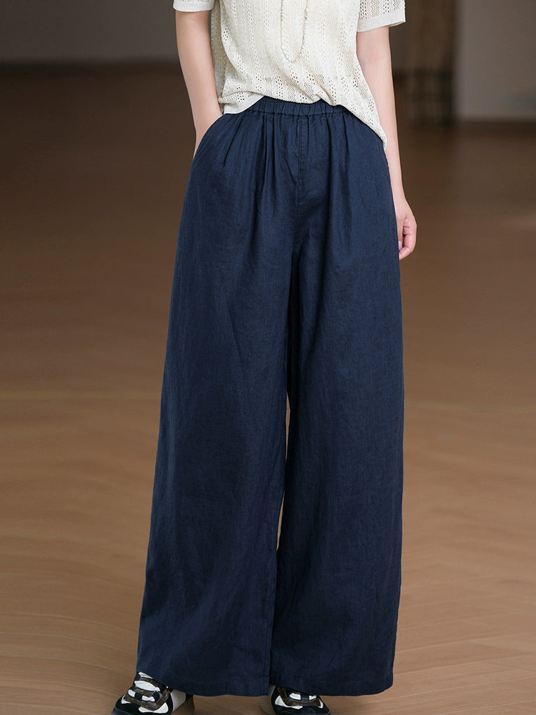 Pantalones rectos de verano para mujer, 100 % lino, color puro