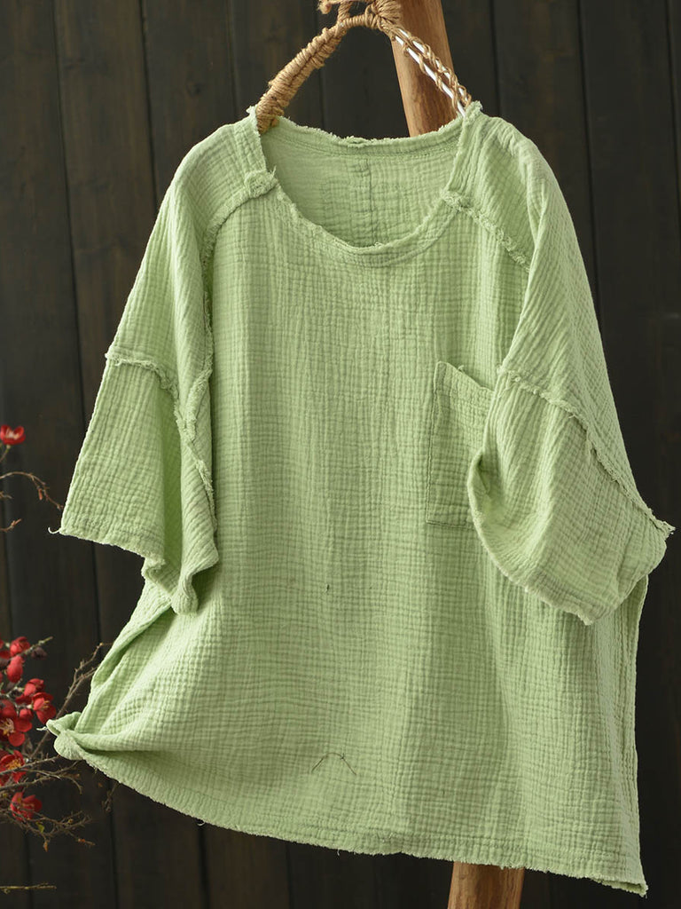 Camisa de algodón con cuello redondo y colores puros de verano para mujer