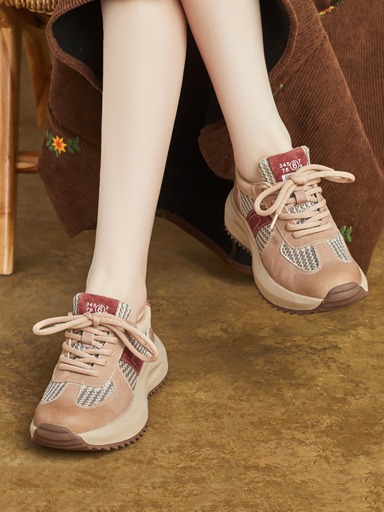 Zapatos de tacón bajo de piel auténtica de color puro étnico para mujer