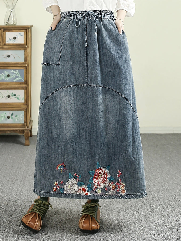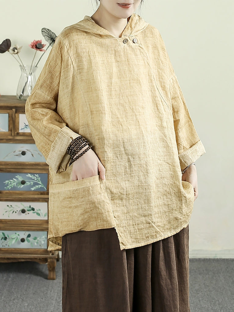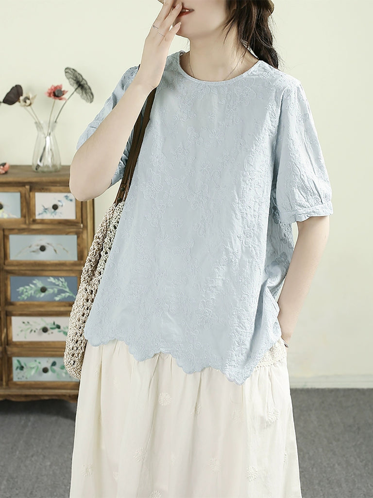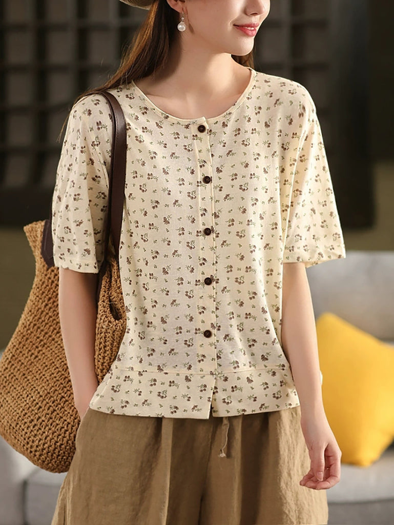 Camisa de ramio con botones y flores étnicas de verano para mujer