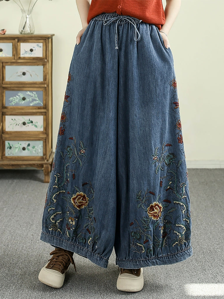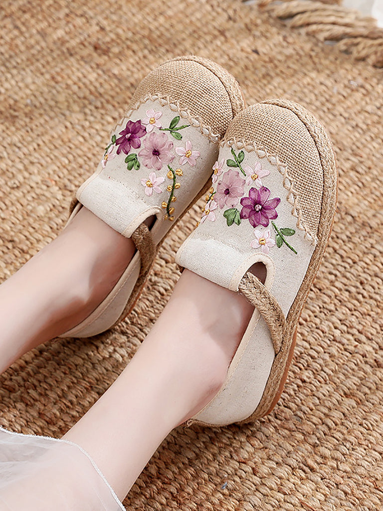 Zapatos planos de tela con flores y cinta étnica de verano para mujer