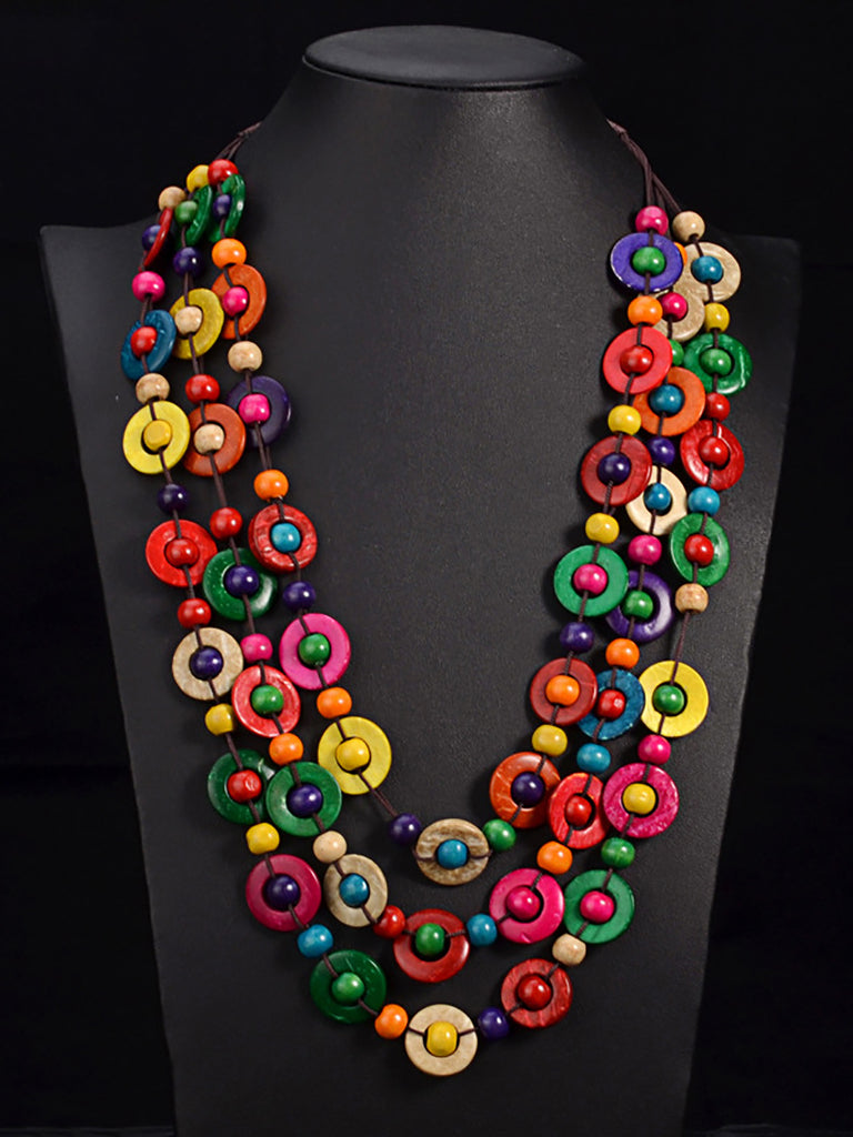 Pendientes de cobre con cuentas de madera a la moda para mujer