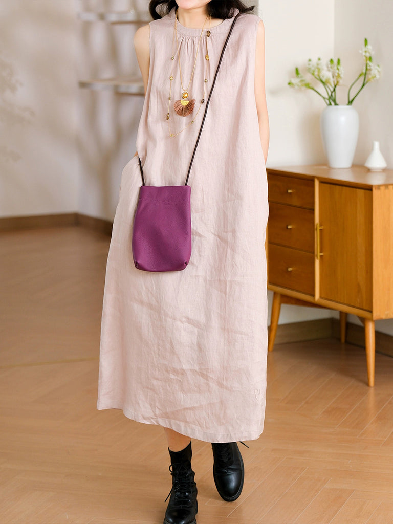Vestido tipo chaleco de verano vintage de patchwork 100 % lino para mujer
