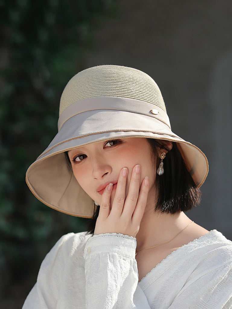Sombrero de paja empalmado de verano informal para mujer, resistente al sol