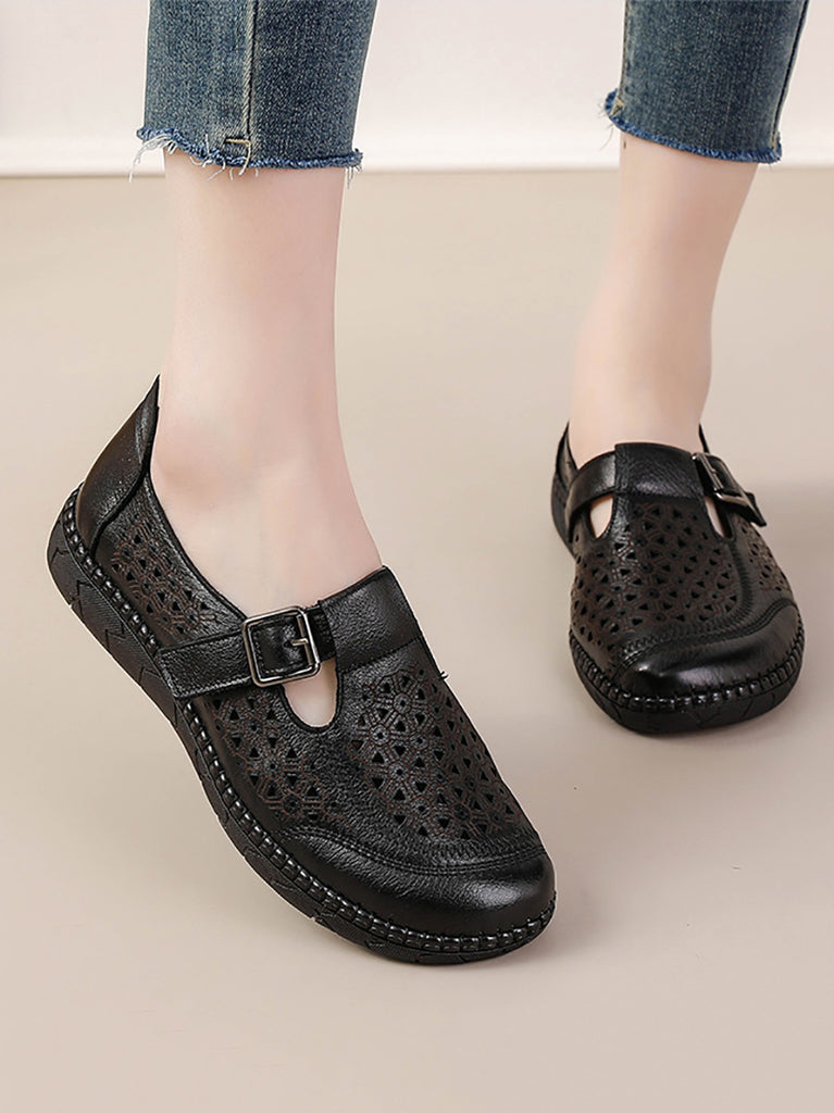 Zapatos de verano de piel auténtica con agujeros para mujer