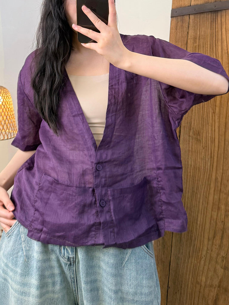 Camisa de algodón con cuello redondo y colores puros de verano para mujer