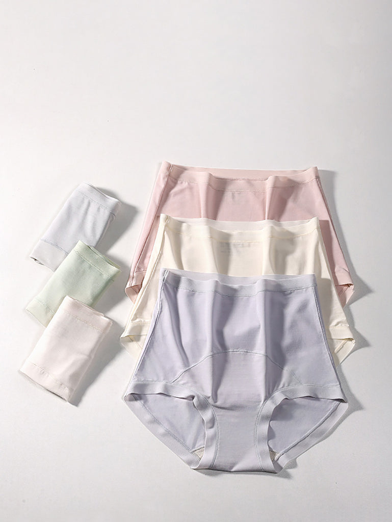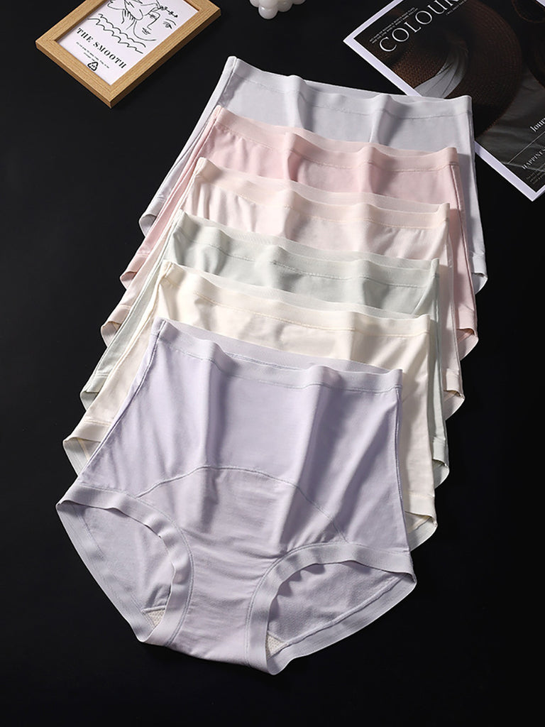 6 piezas de ropa interior de cintura alta de color puro para mujer de verano