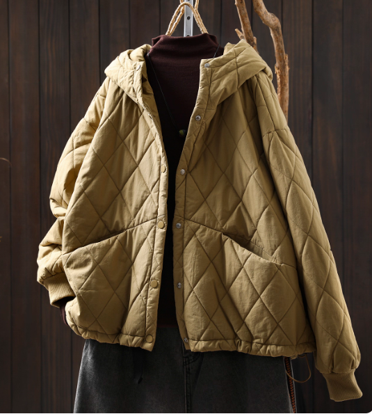 Chaqueta acolchada con capucha de color puro informal de otoño para mujer