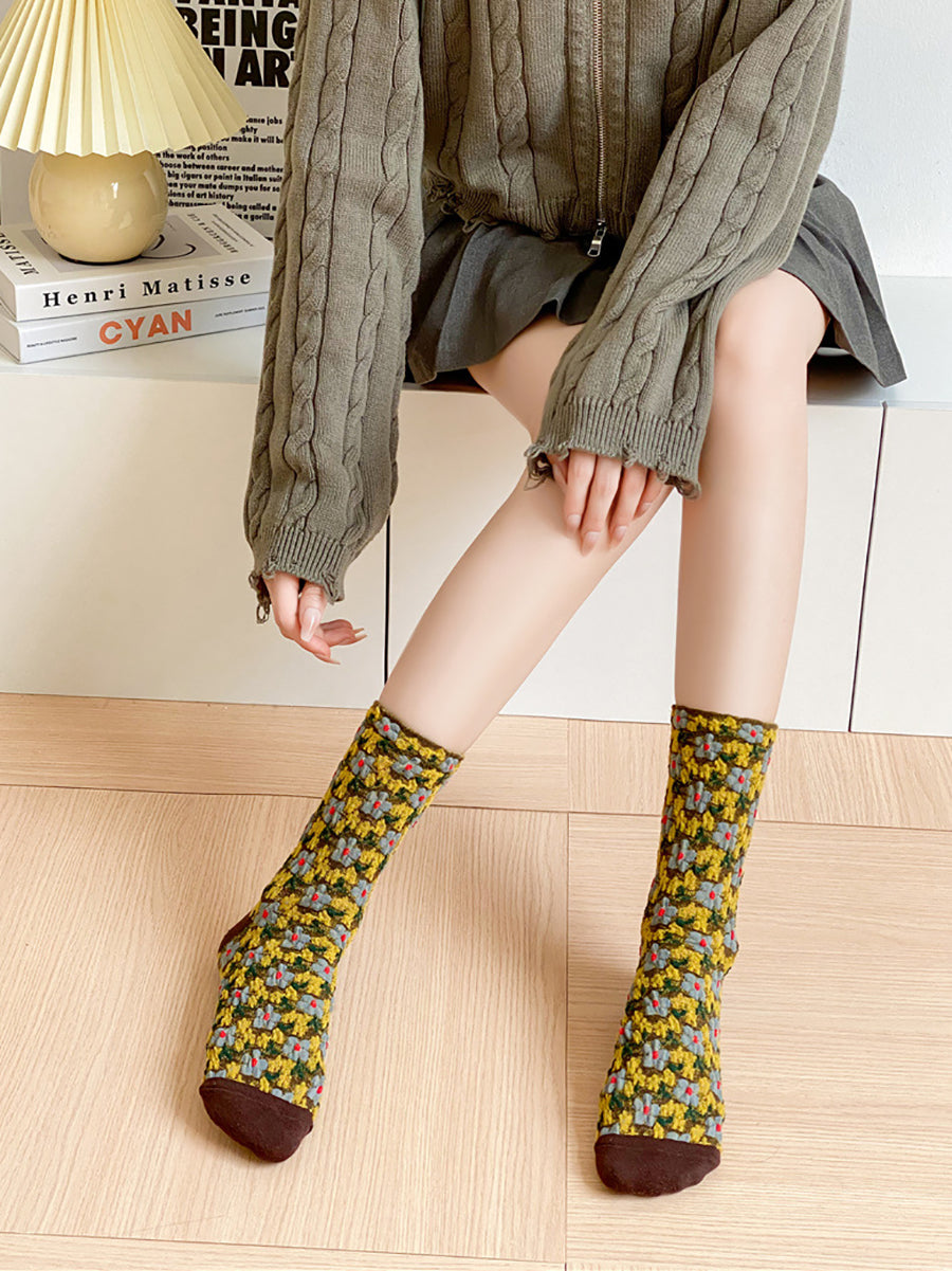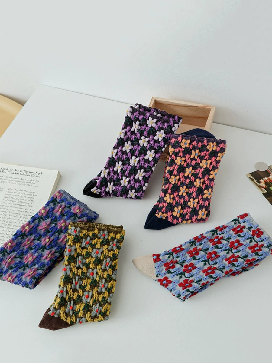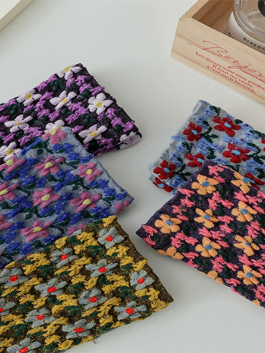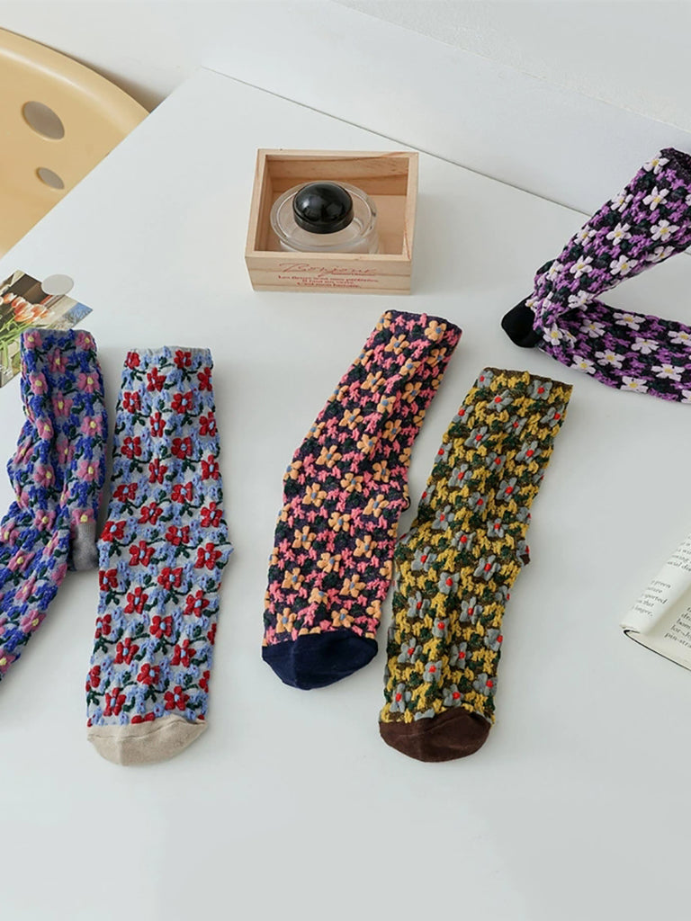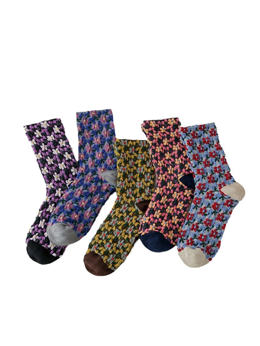 5 pares de calcetines de jacquard con flores artísticas para mujer