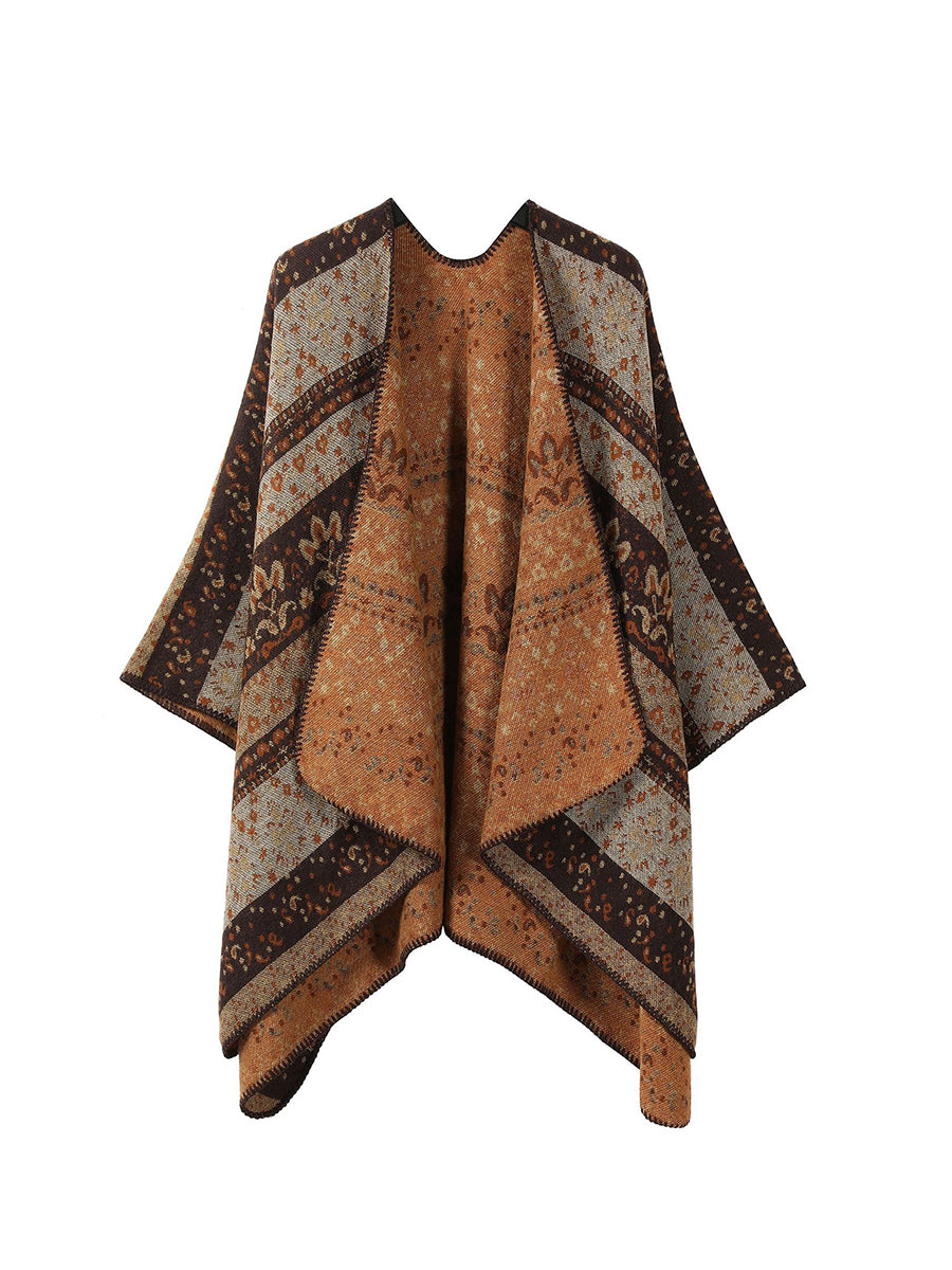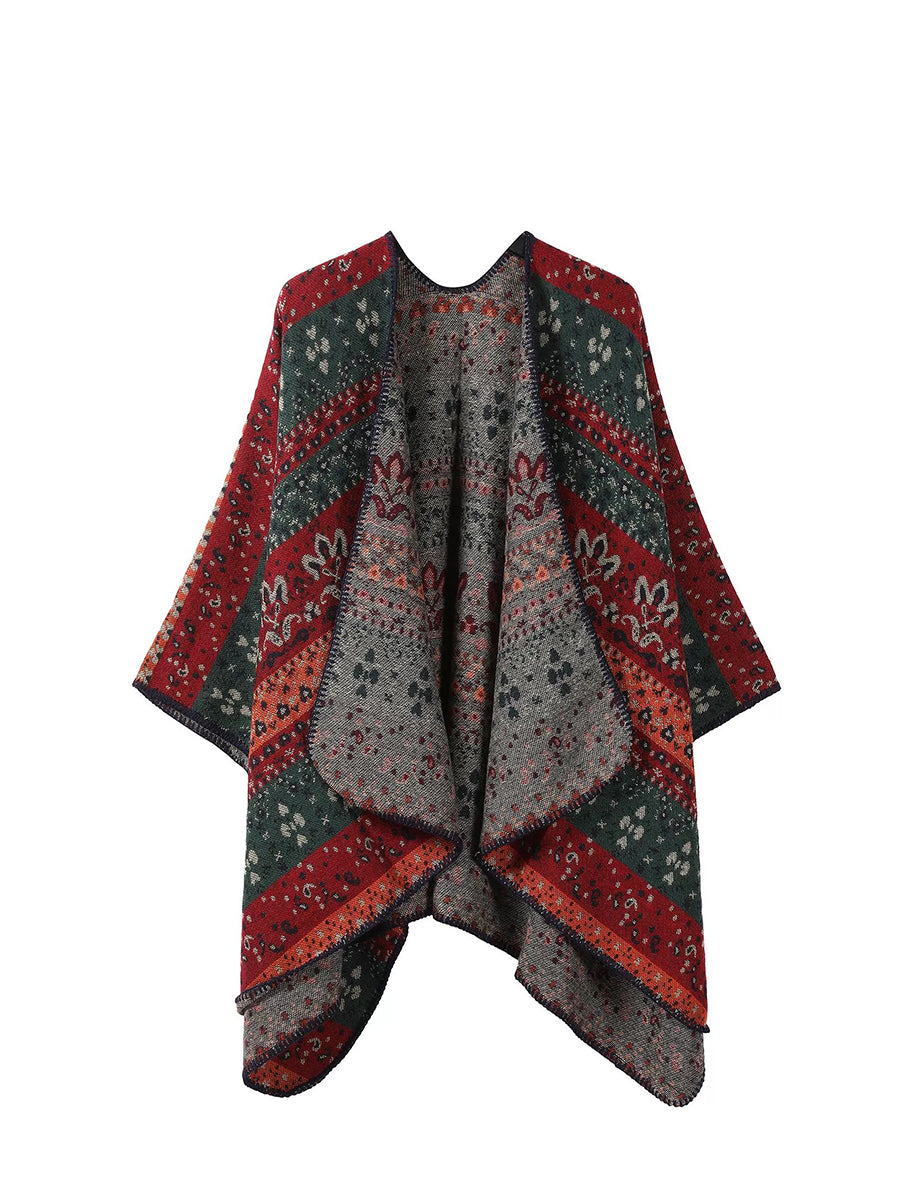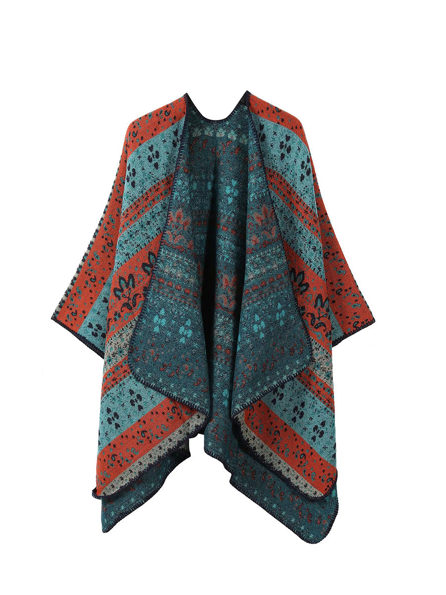 Bufanda chal floral con bloques de colores étnicos para mujer
