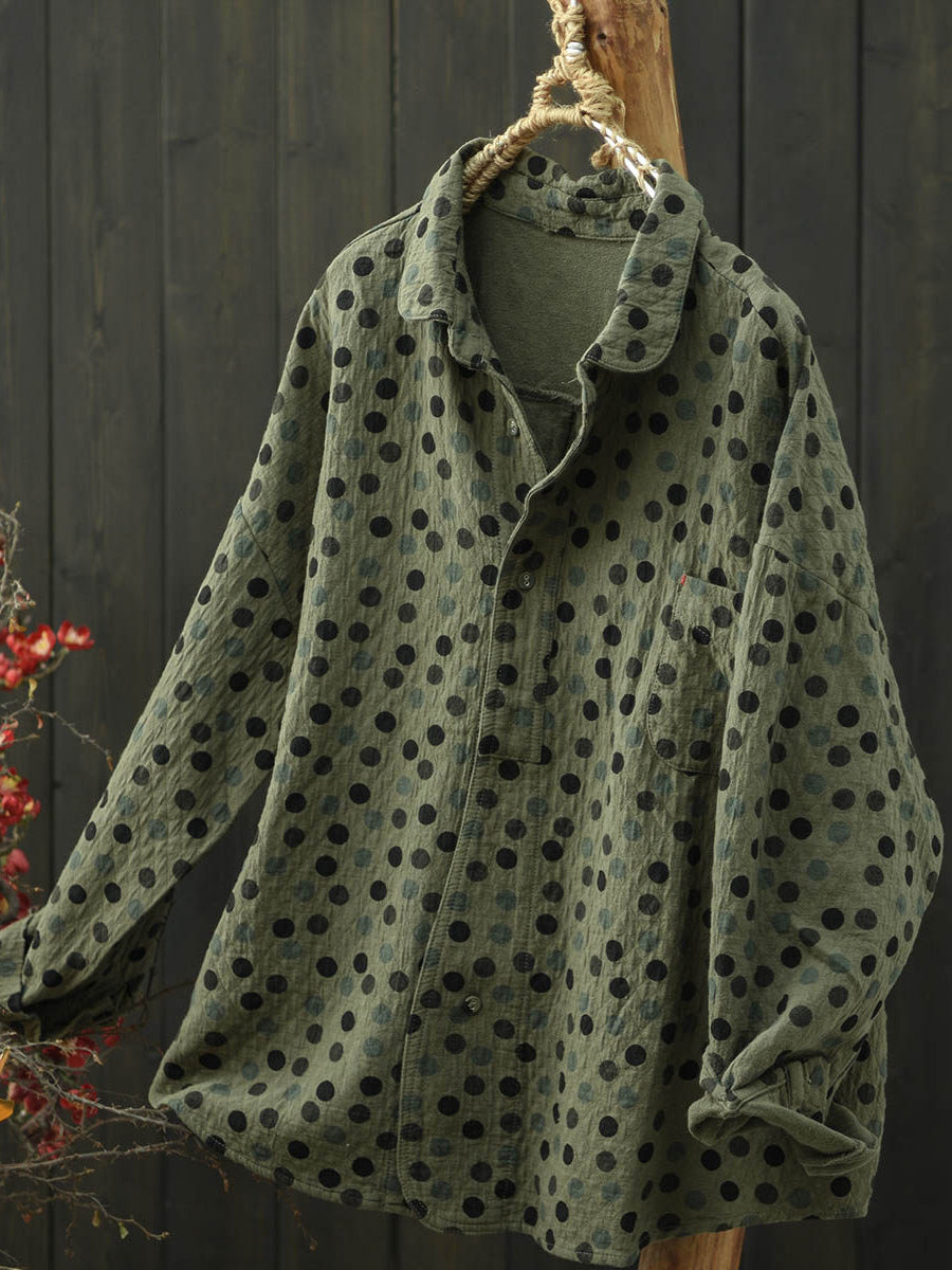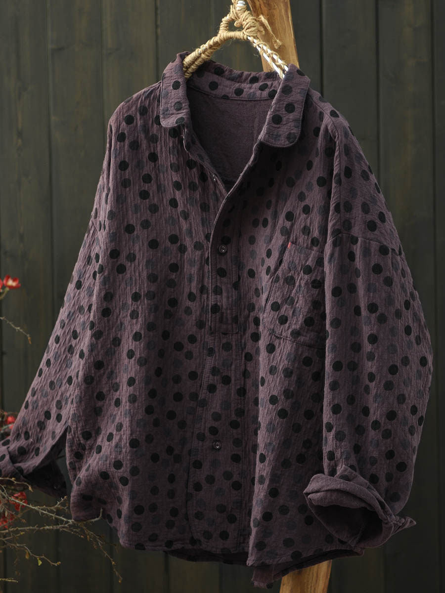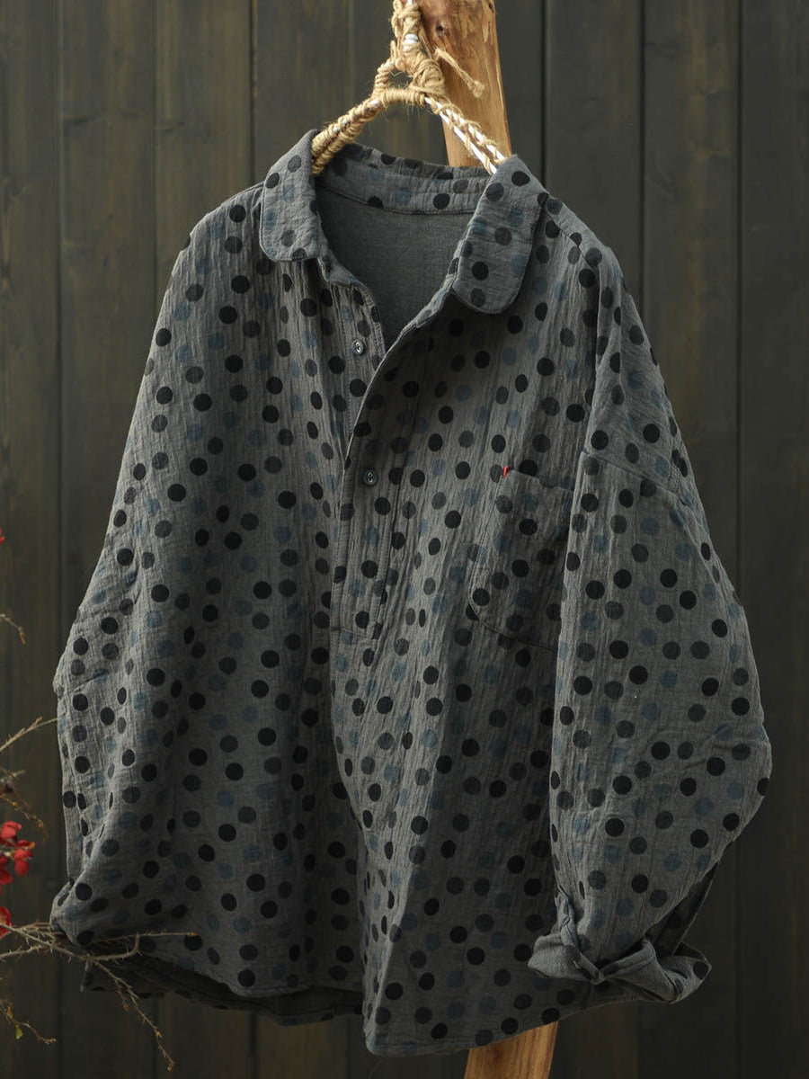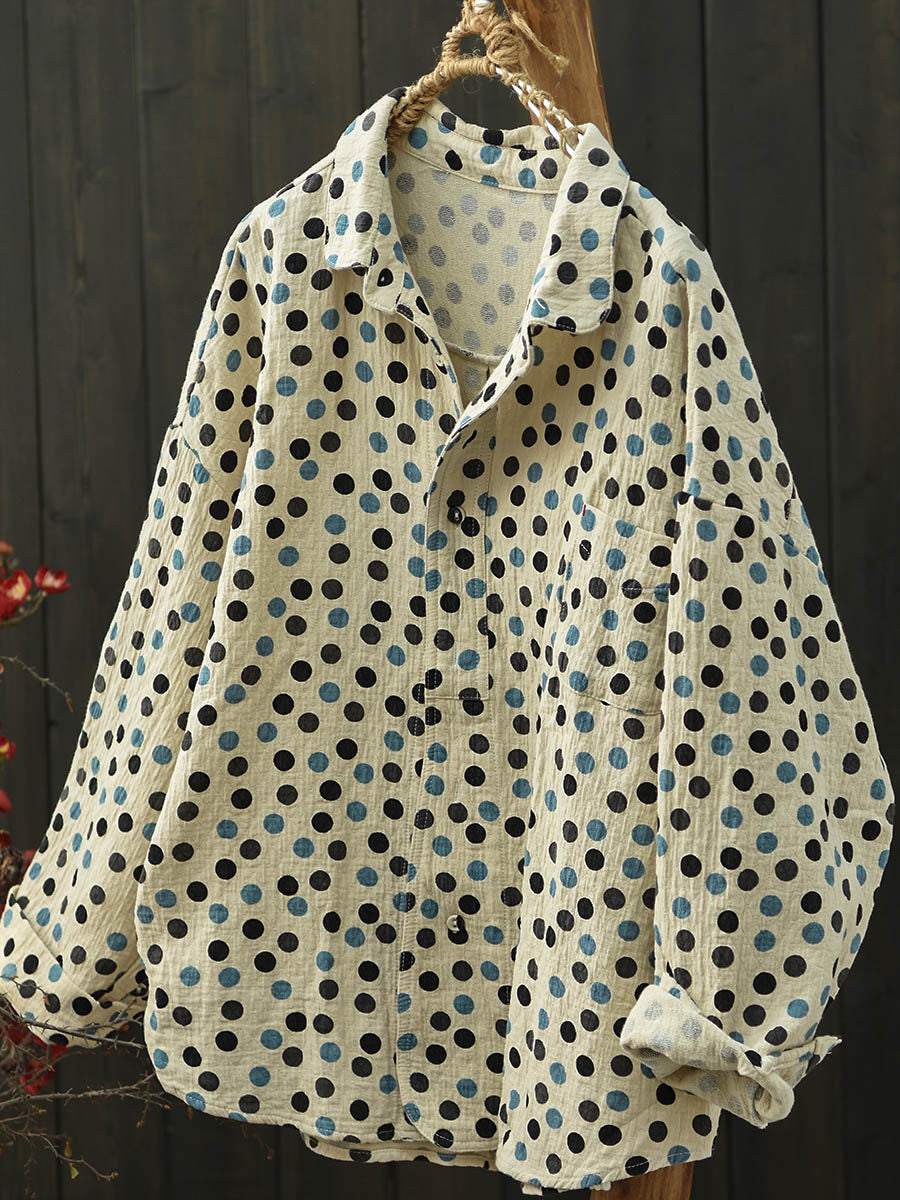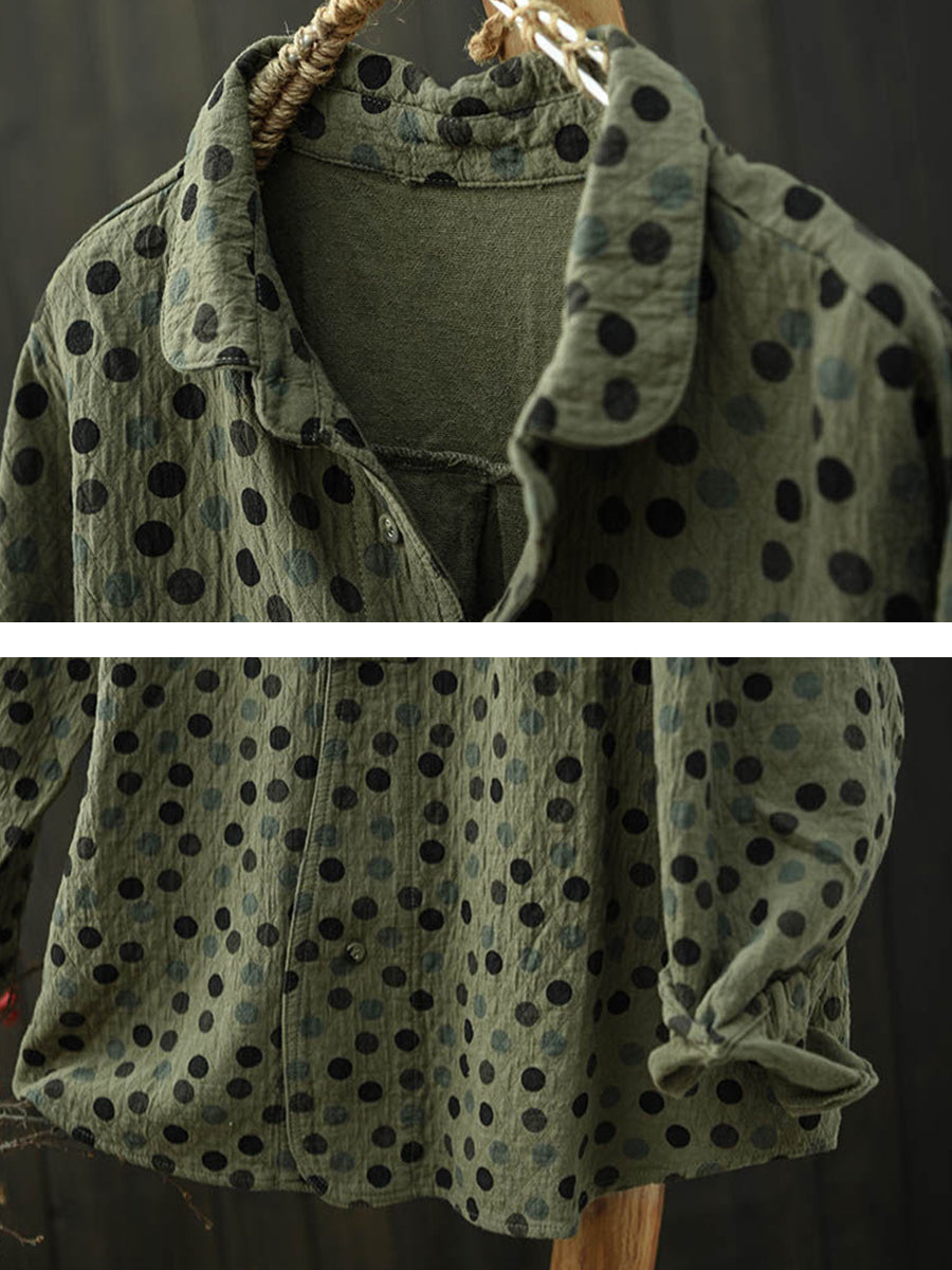 Camisa de algodón con cuello en V y lunares artísticos de otoño para mujer