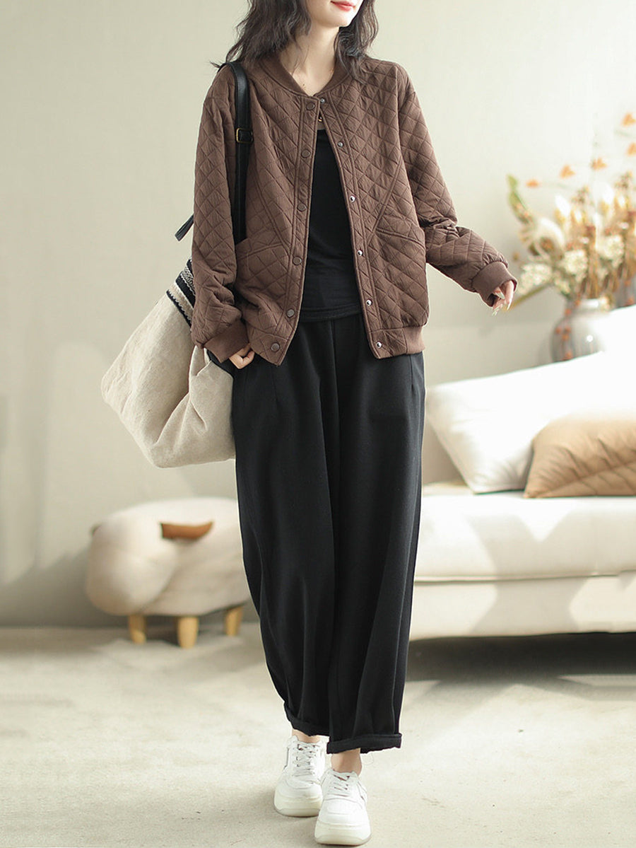 Abrigo acolchado de cuello redondo de color puro retro de invierno para mujer