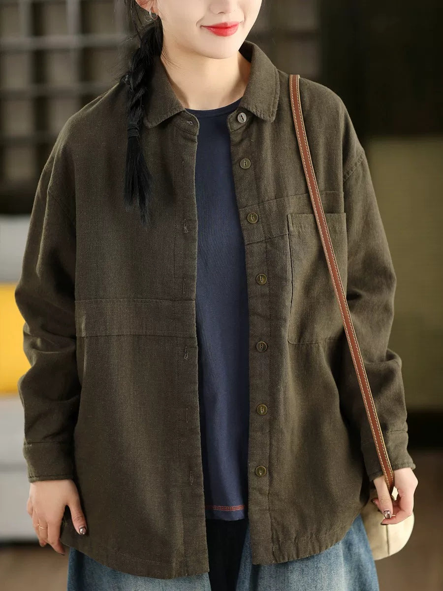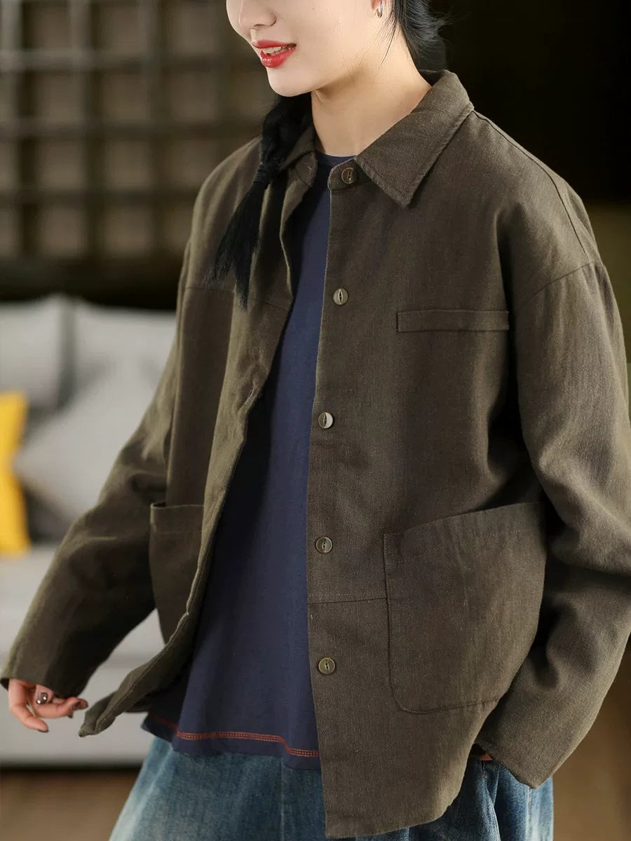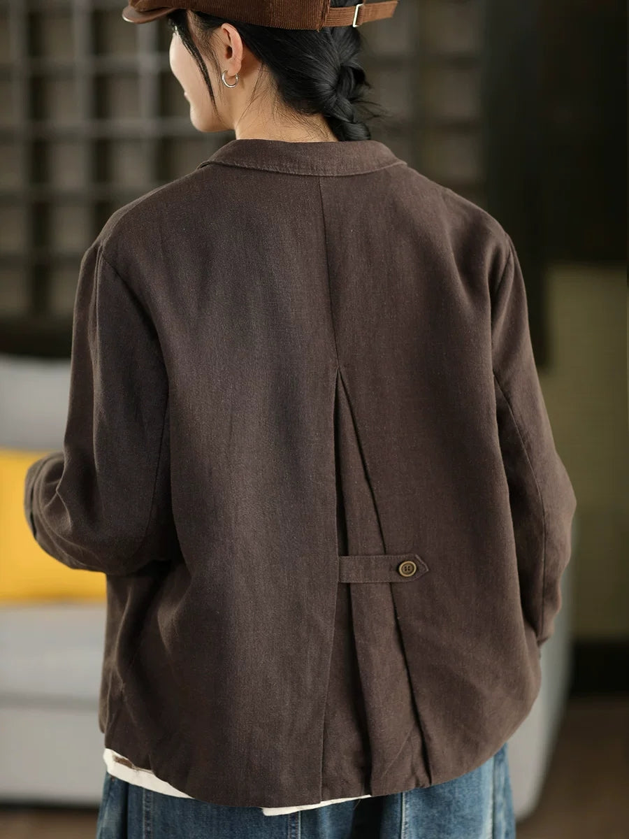 Abrigo de primavera para mujer, 100 % lino, con cuello vuelto y color puro