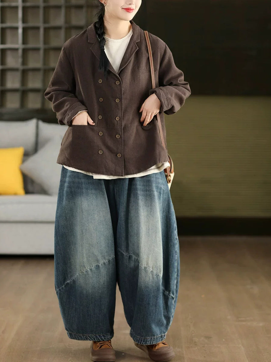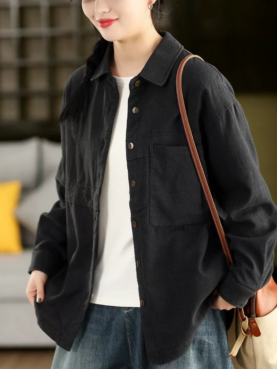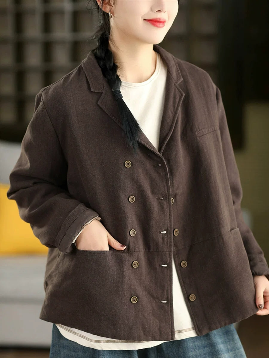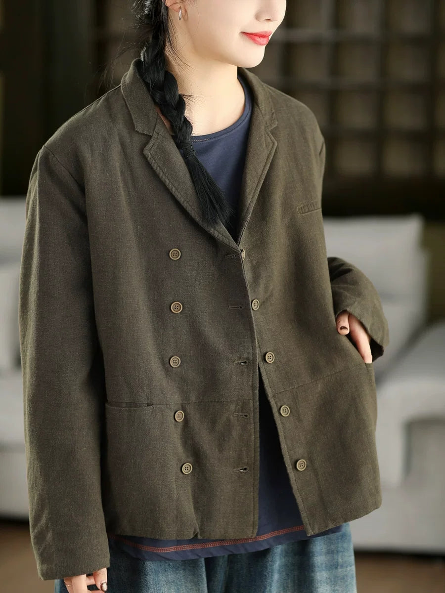 Abrigo de primavera para mujer, 100 % lino, con cuello vuelto y color puro