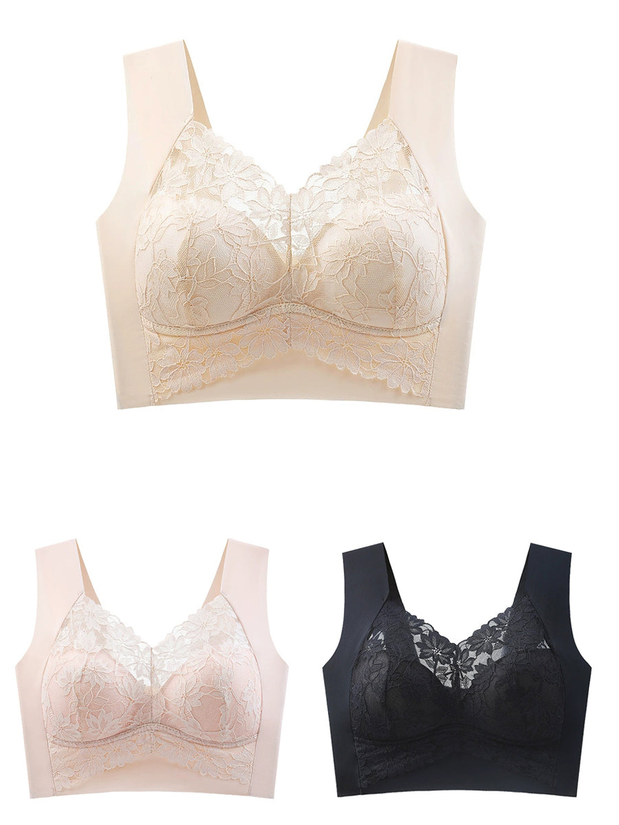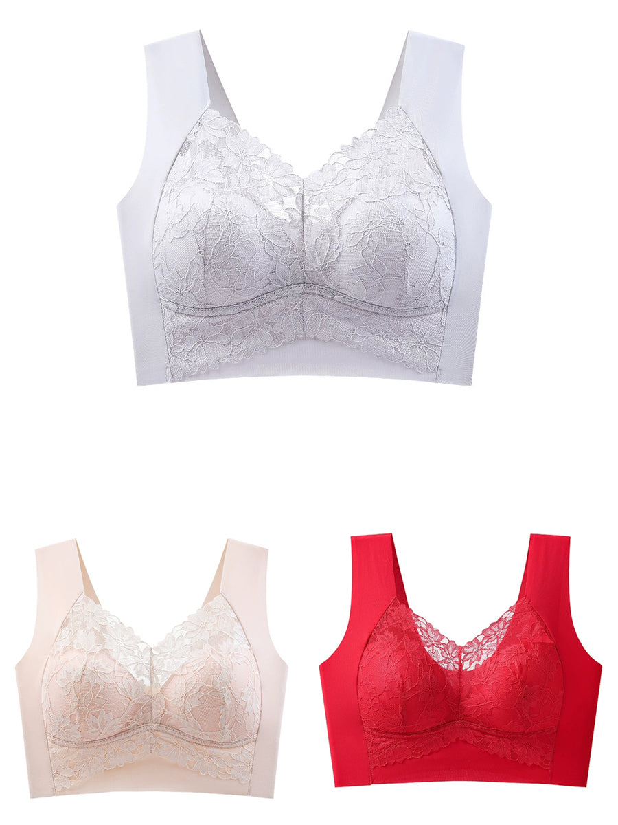 Sujetador de una pieza sin aros de encaje Artsy para mujer de 3 piezas
