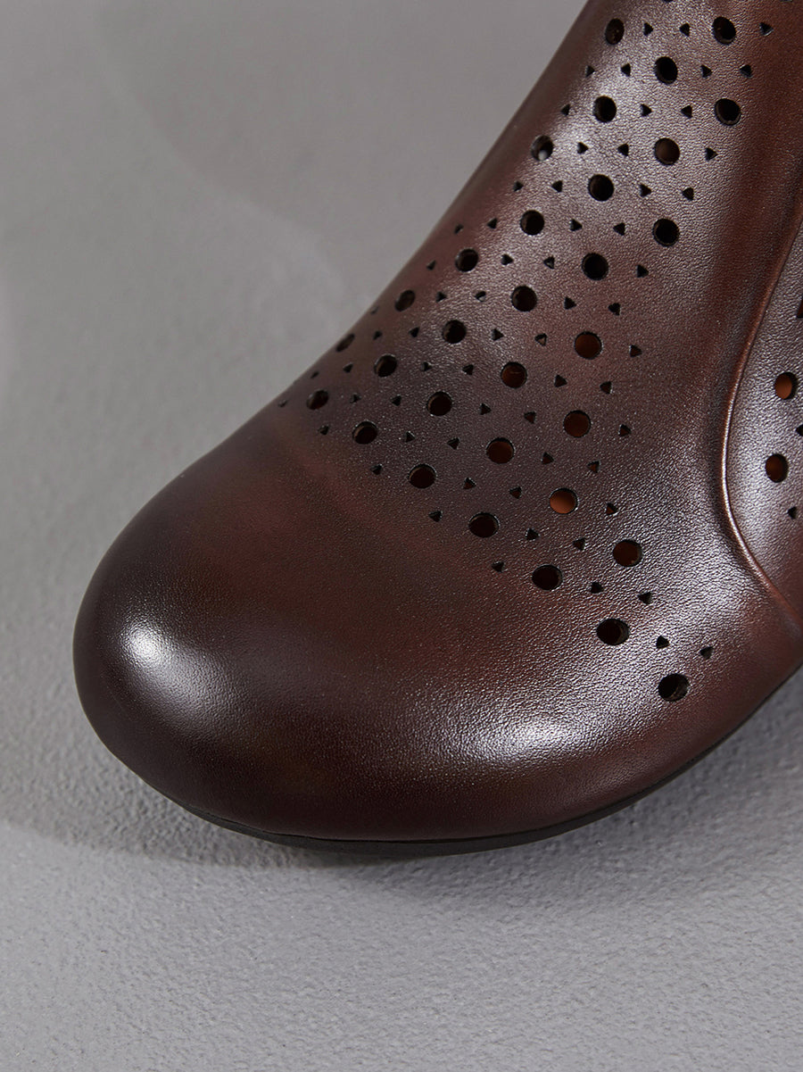 Botas de tacón bajo caladas de piel auténtica para mujer