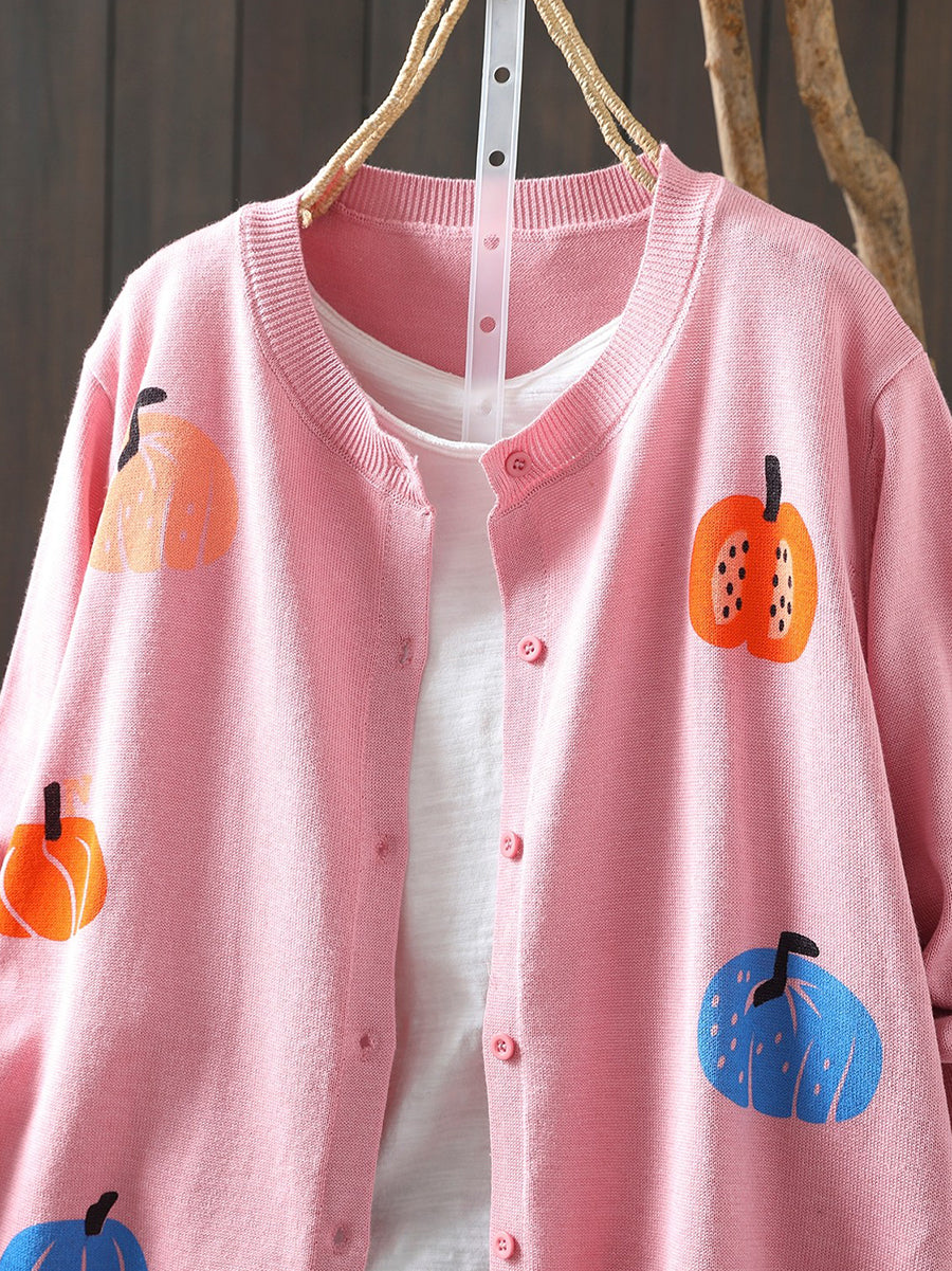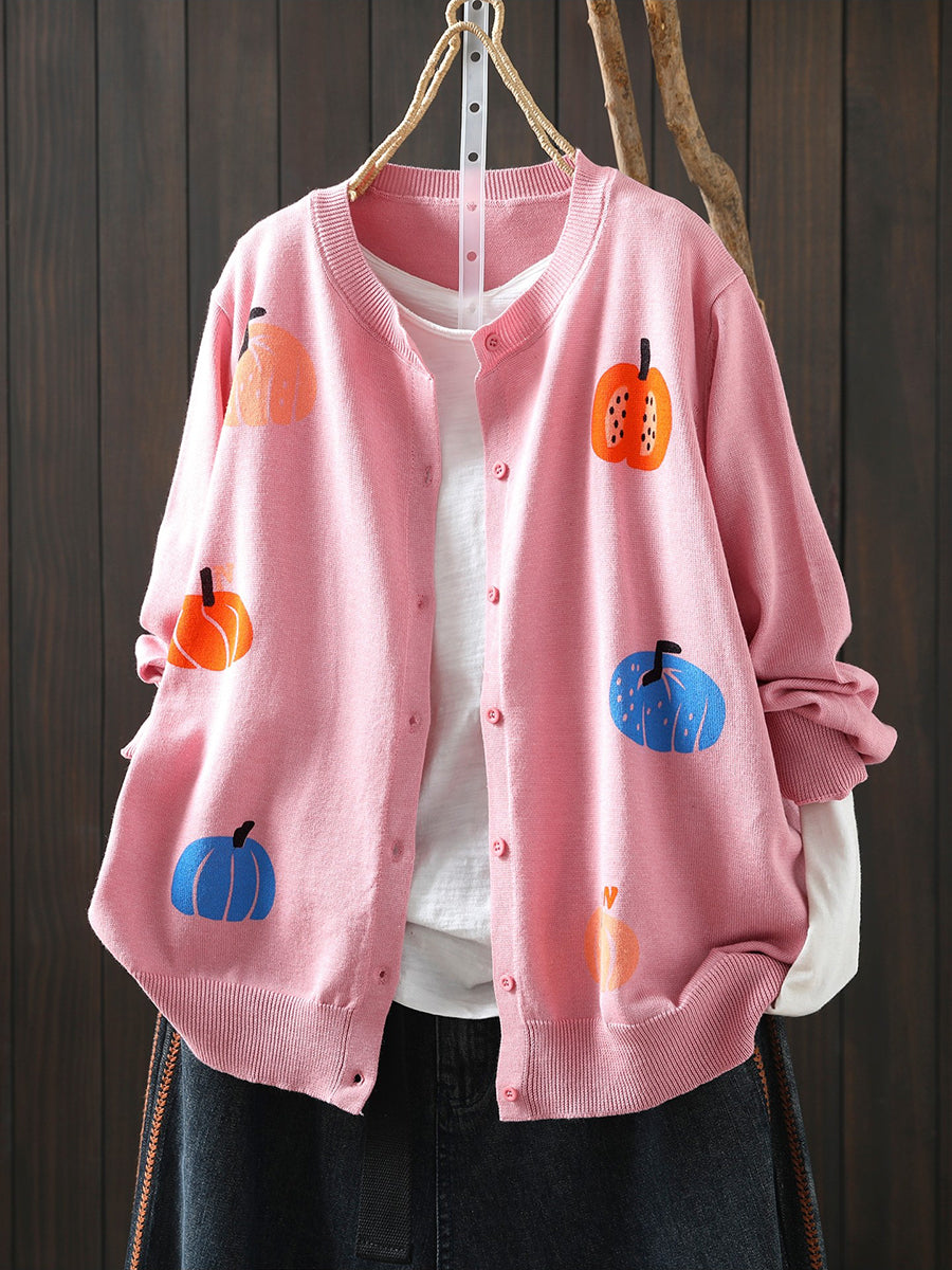 Suéter de cuello redondo con calabaza de primavera artística para mujer