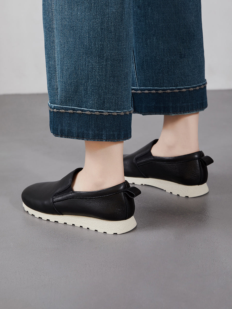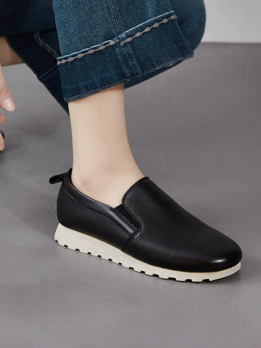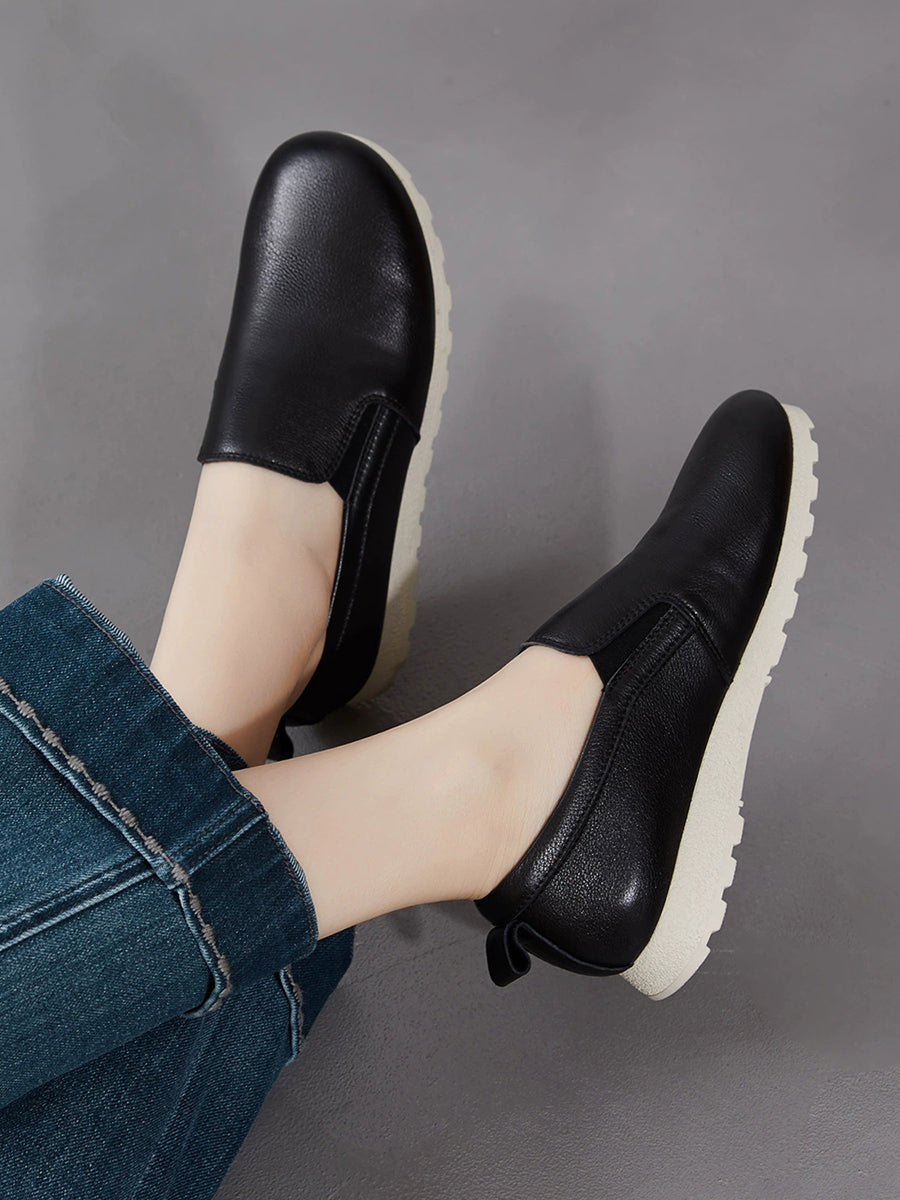 Zapatos de tacón bajo de piel auténtica para mujer, primavera