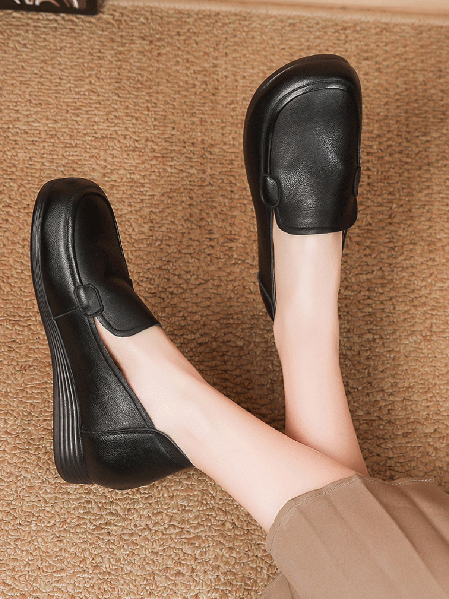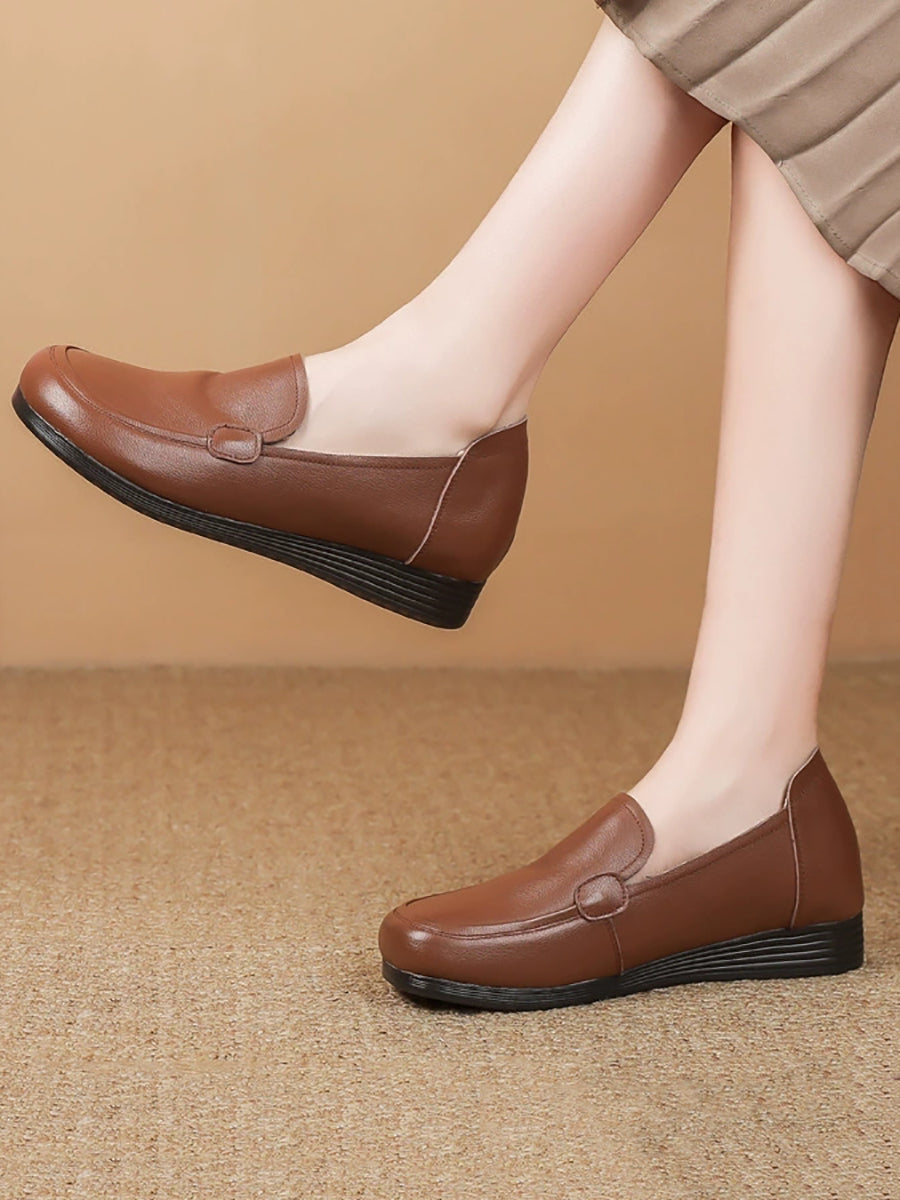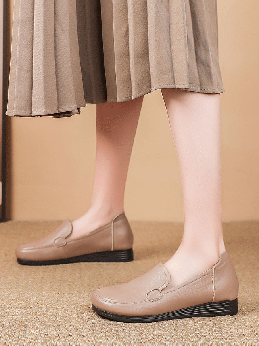 Zapatos de tacón bajo de piel auténtica de verano para mujer