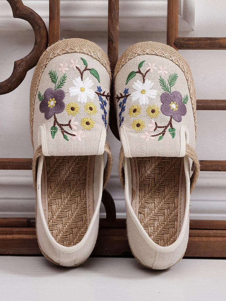 Zapatos planos de algodón con bordado artístico de verano para mujer