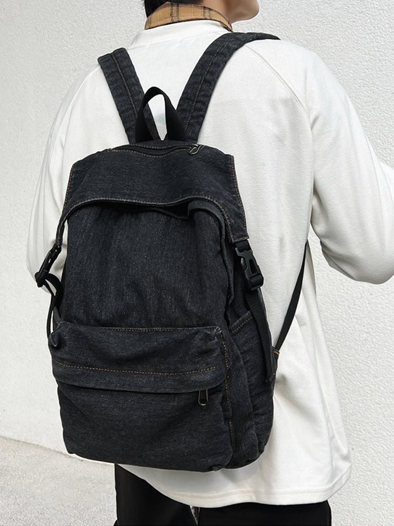 Women Vintage Pure Color Large Capacity Denim Backpack