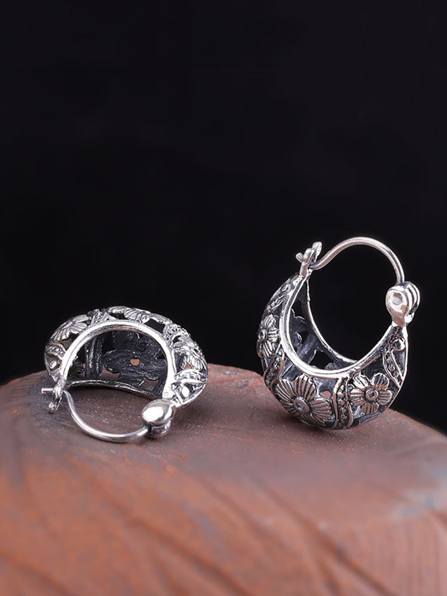 Pendientes vintage de plata de ley 925 con diseño de flores huecas para mujer