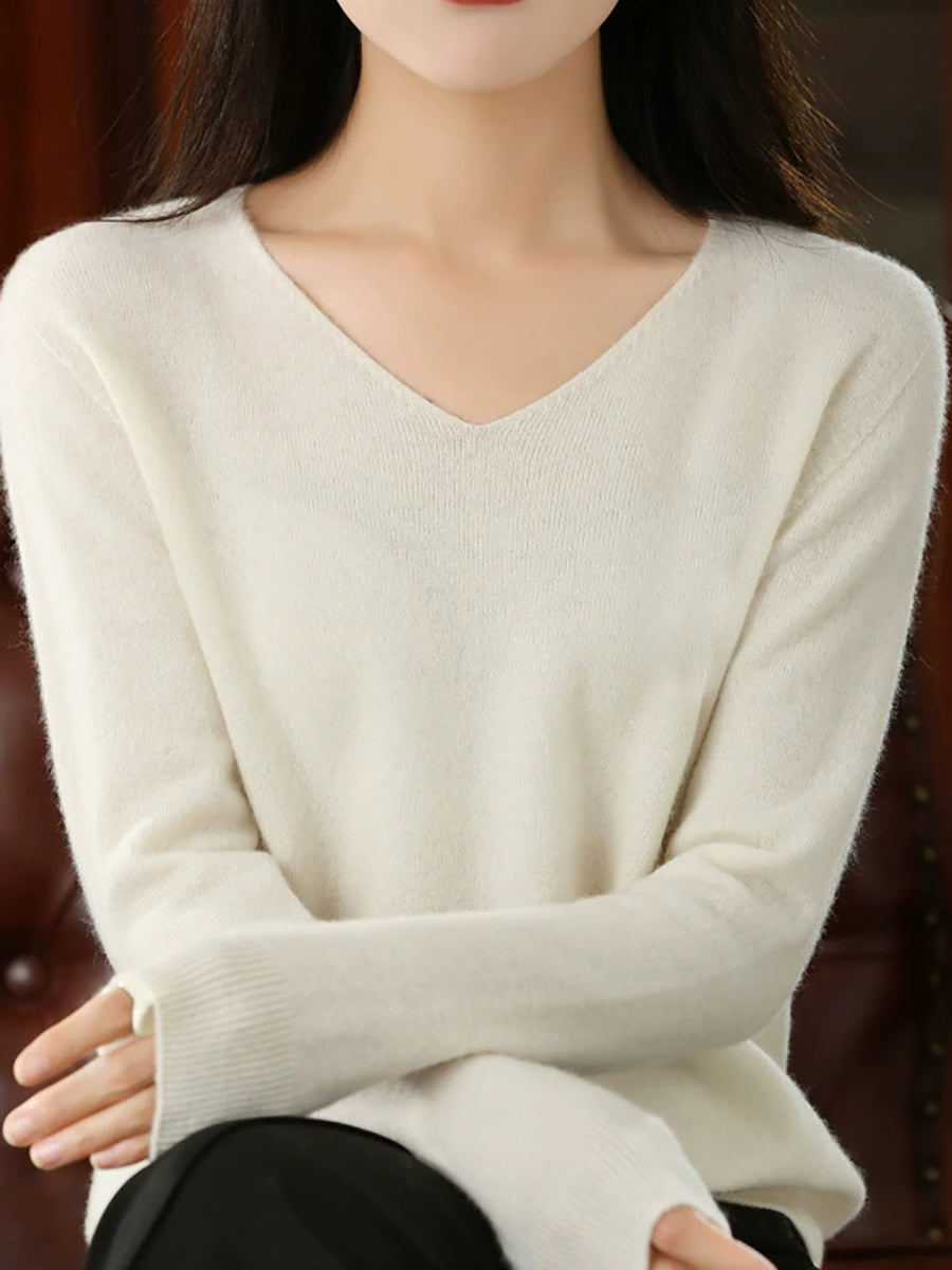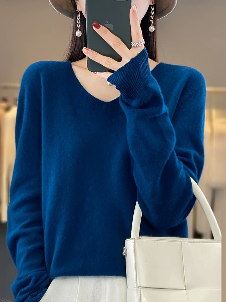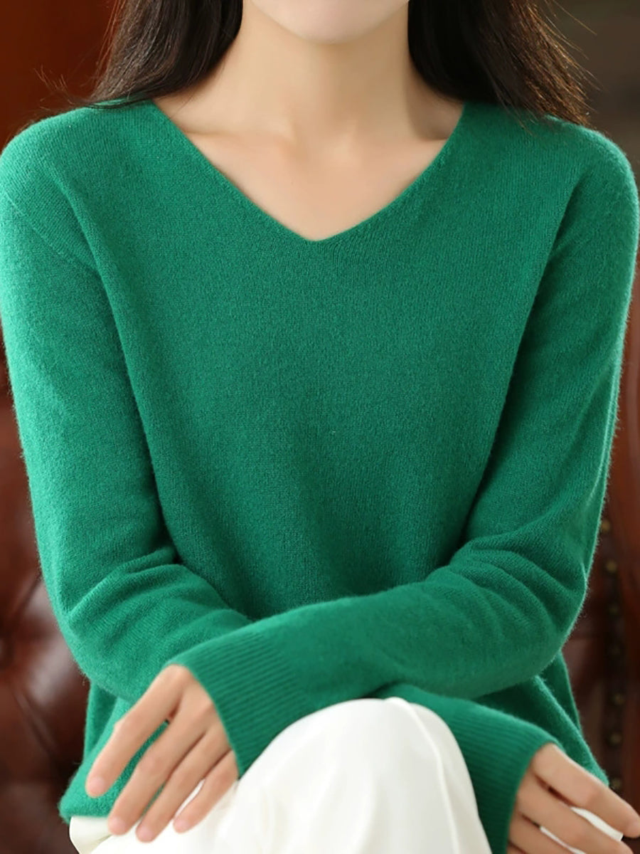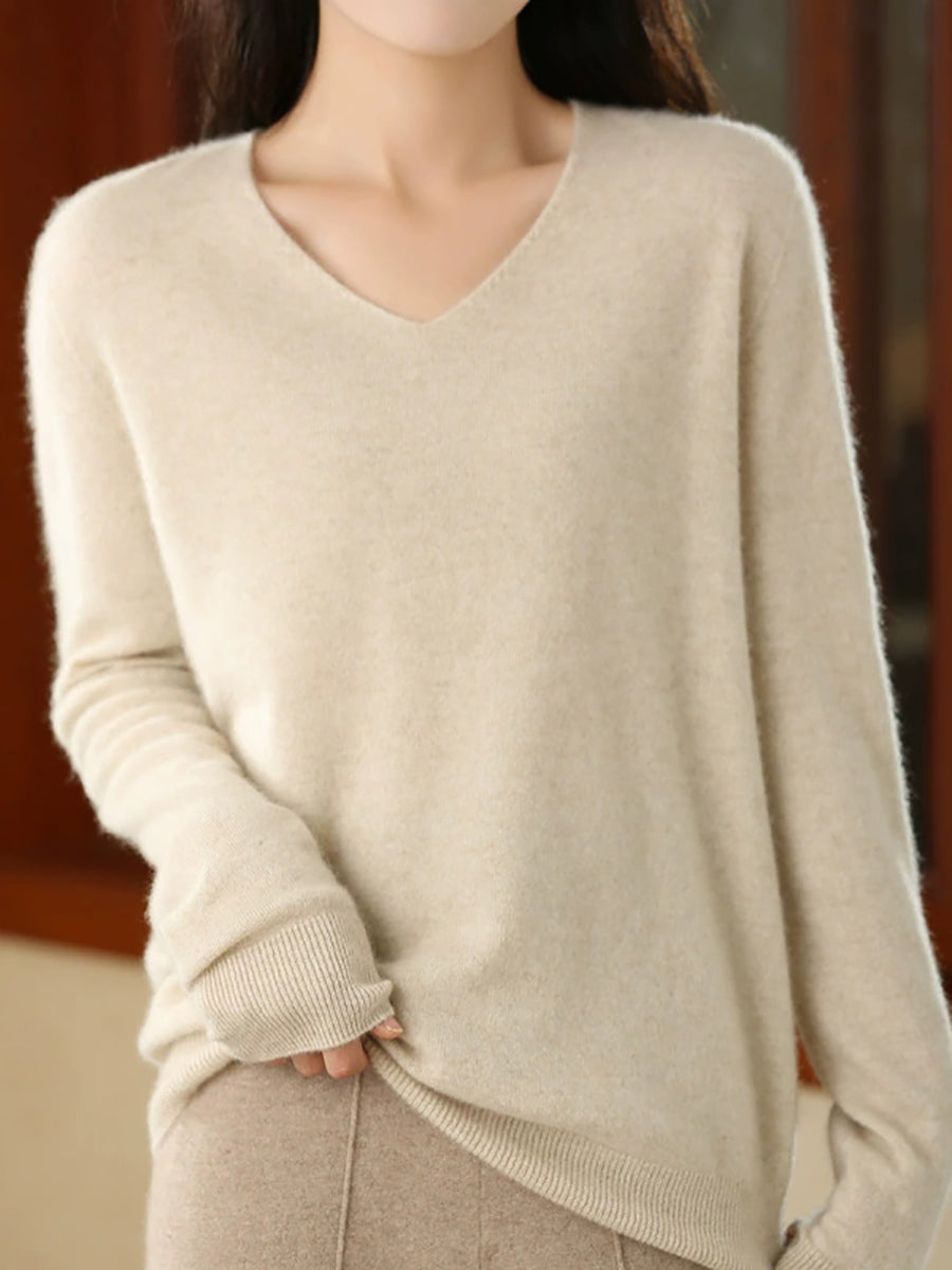 Suéter casual de primavera con cuello en V y color puro para mujer