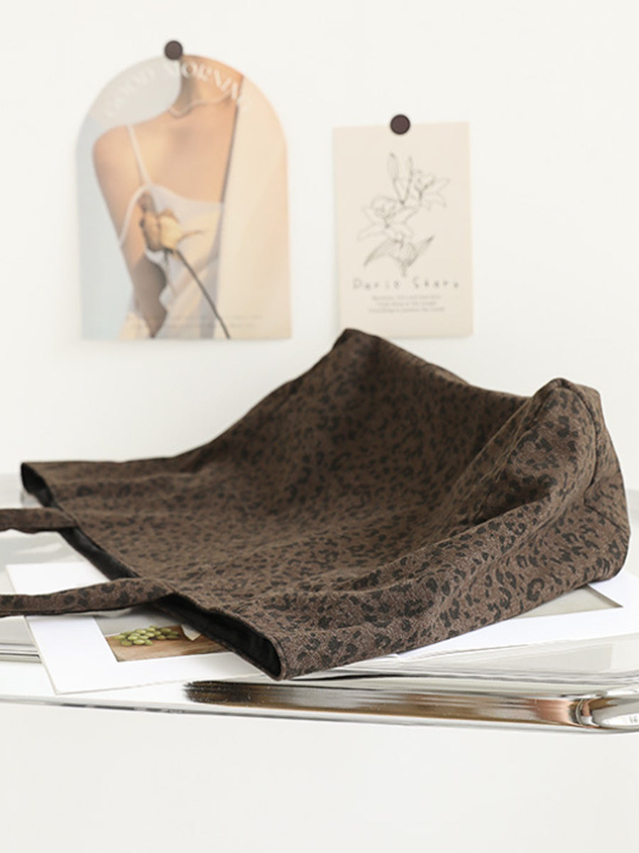 Bolso de hombro vintage con estampado de leopardo y doble cara para mujer