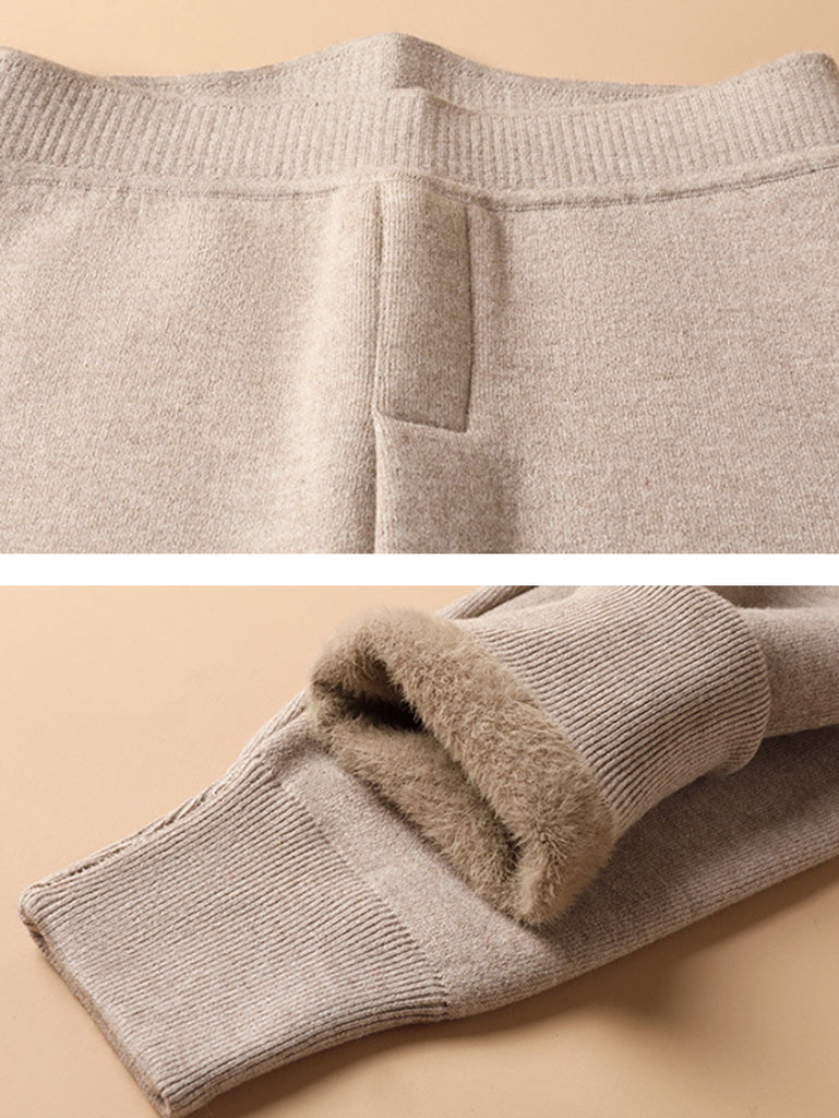 Leggings de lana forradas con forro polar, color liso, cálidas para el invierno