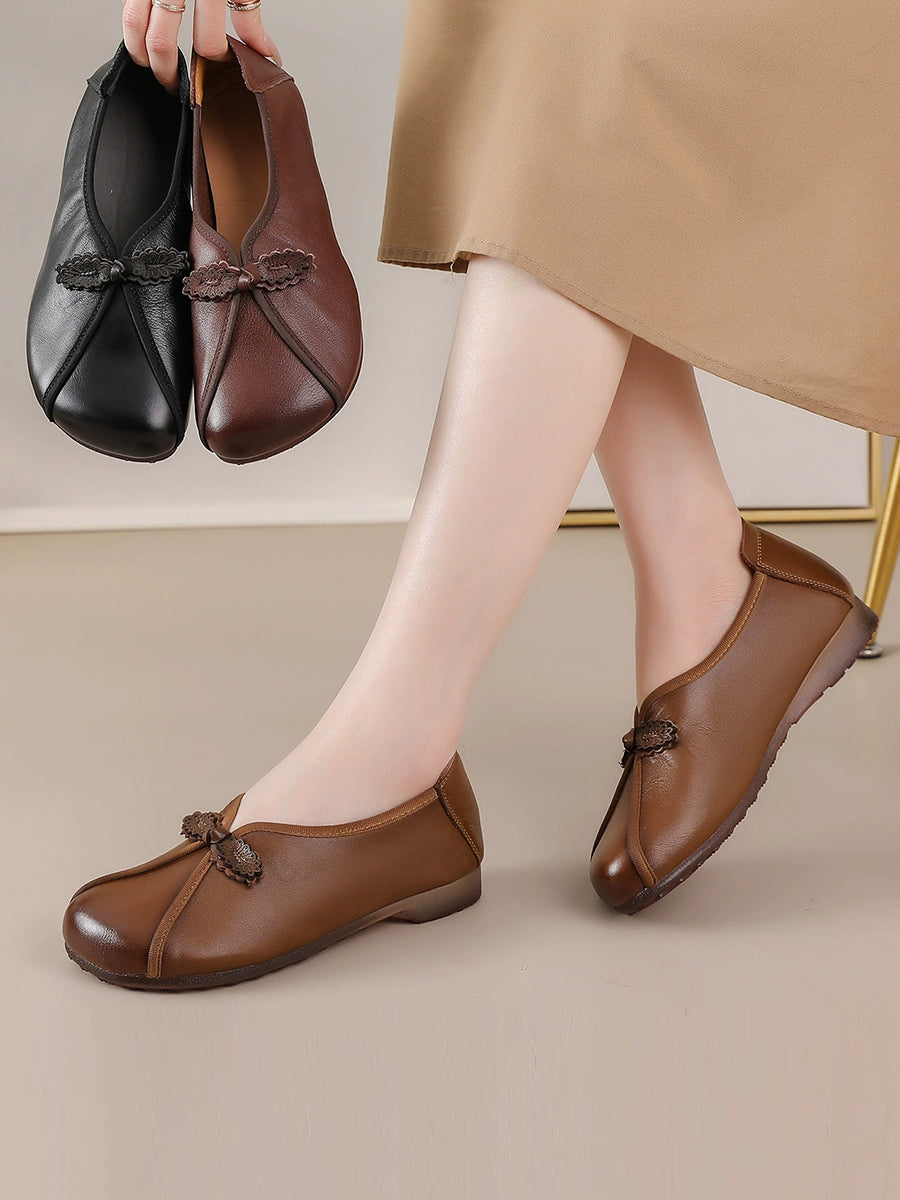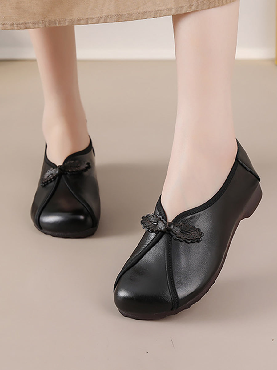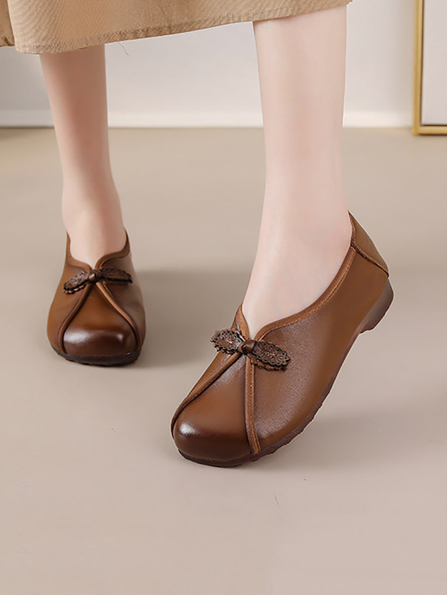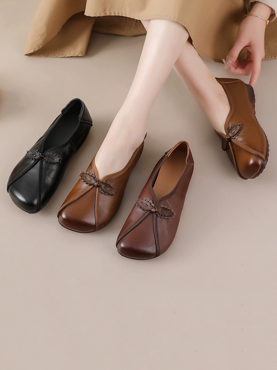 Zapatos retro de piel auténtica con empalmes para mujer