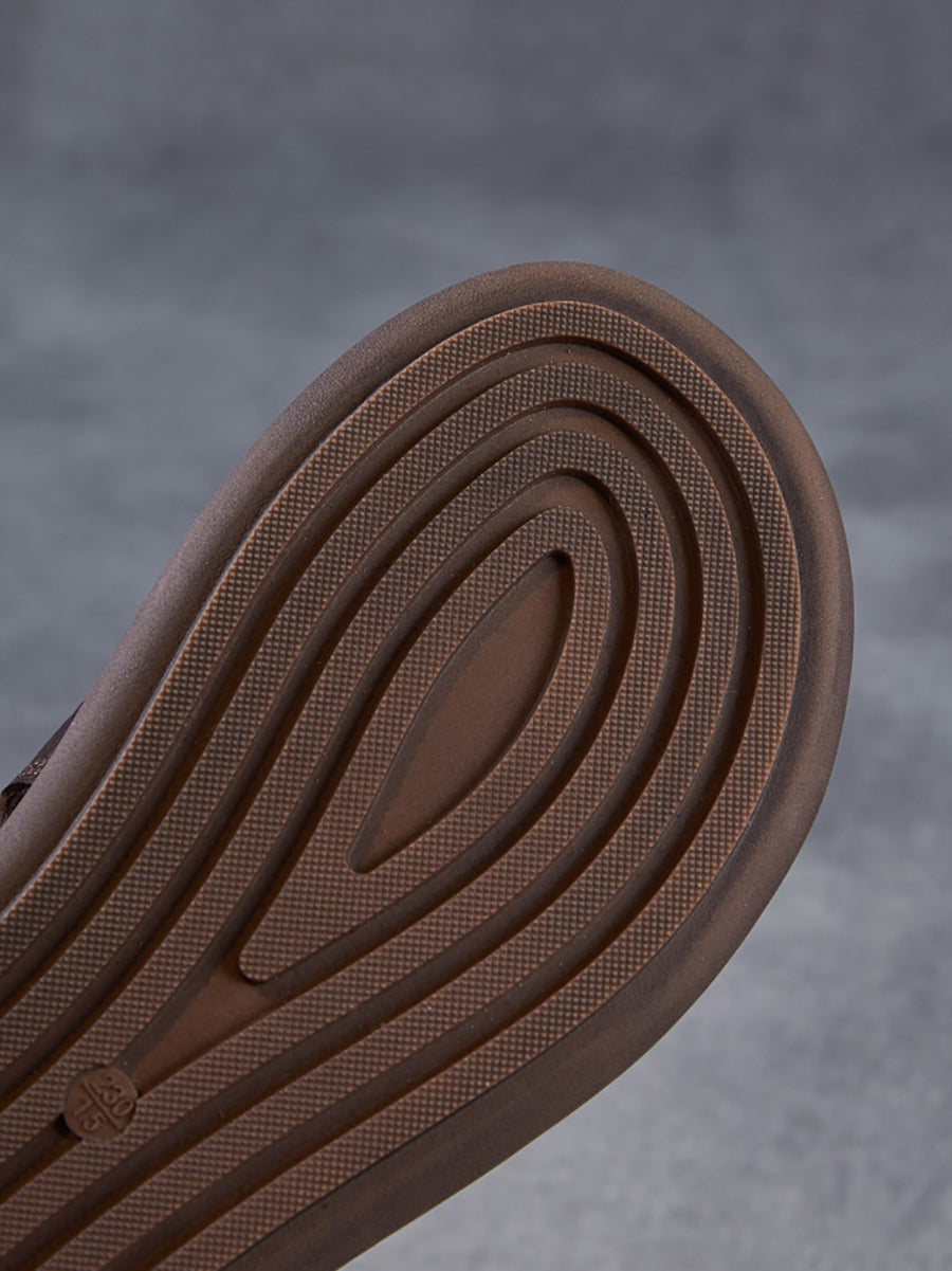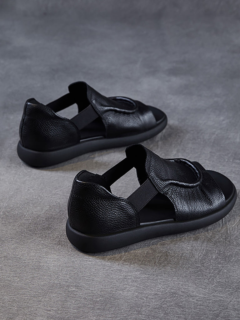 Sandalias planas de cuero con punta abierta para mujer de verano