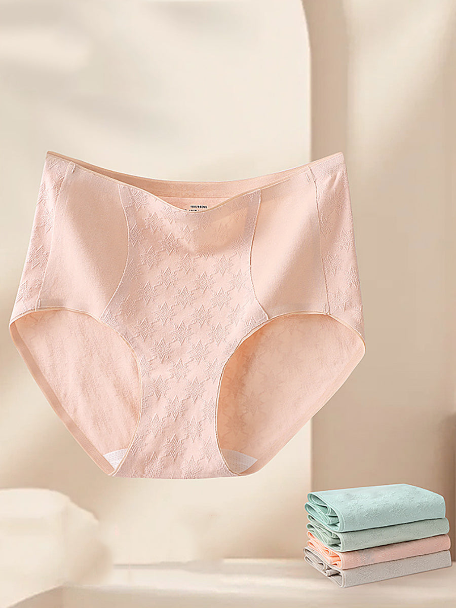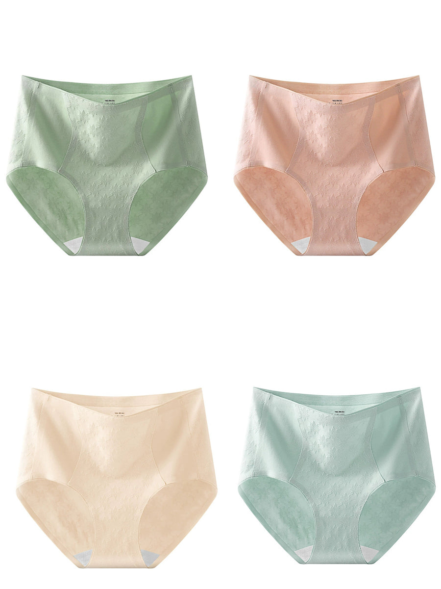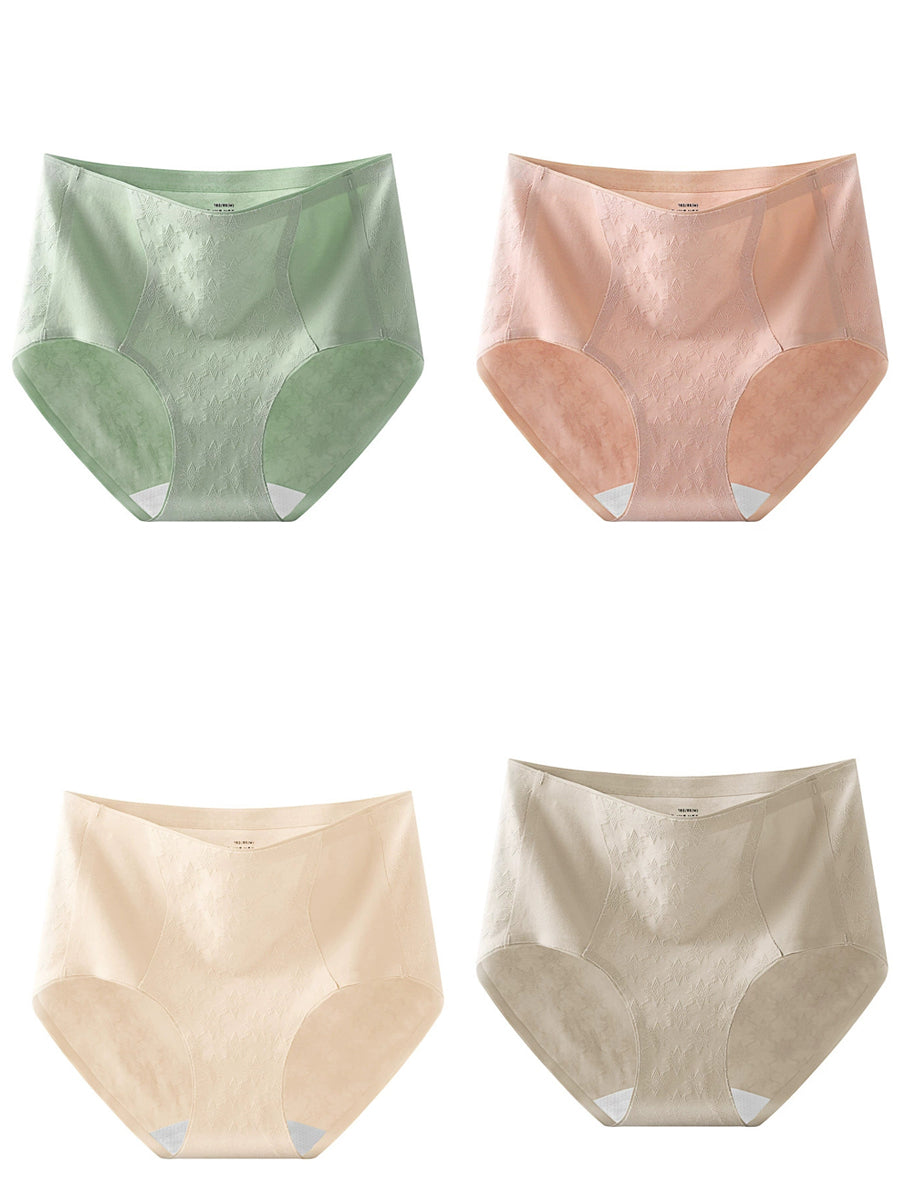 4 piezas de ropa interior de cintura alta de jacquard artístico para mujer