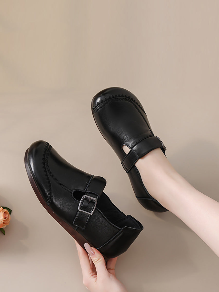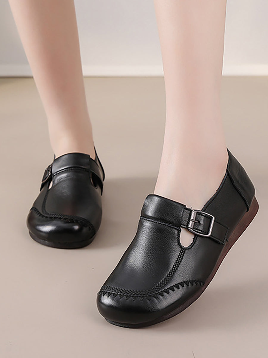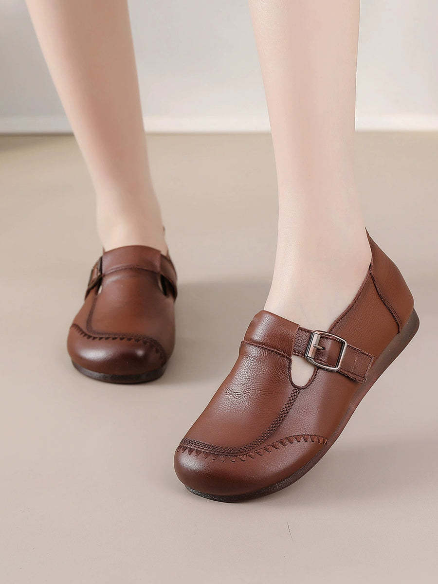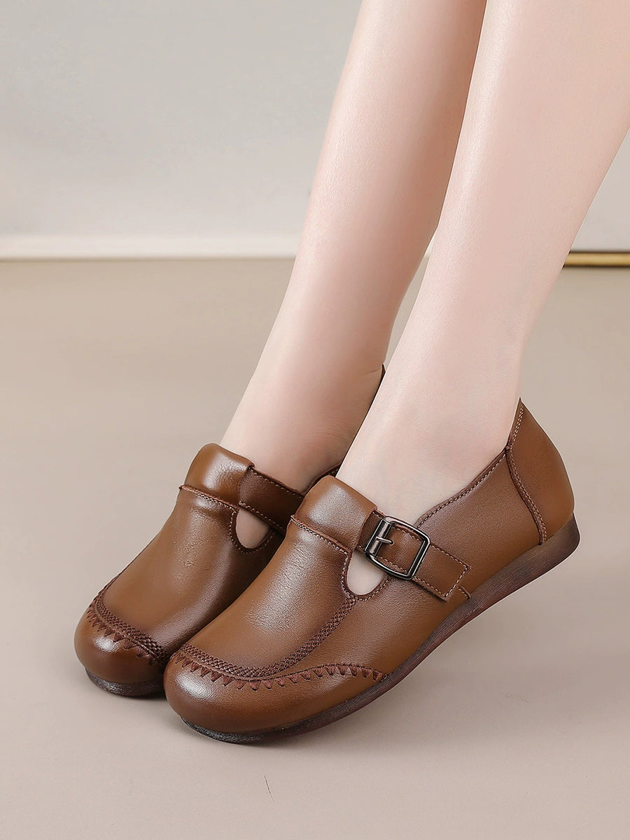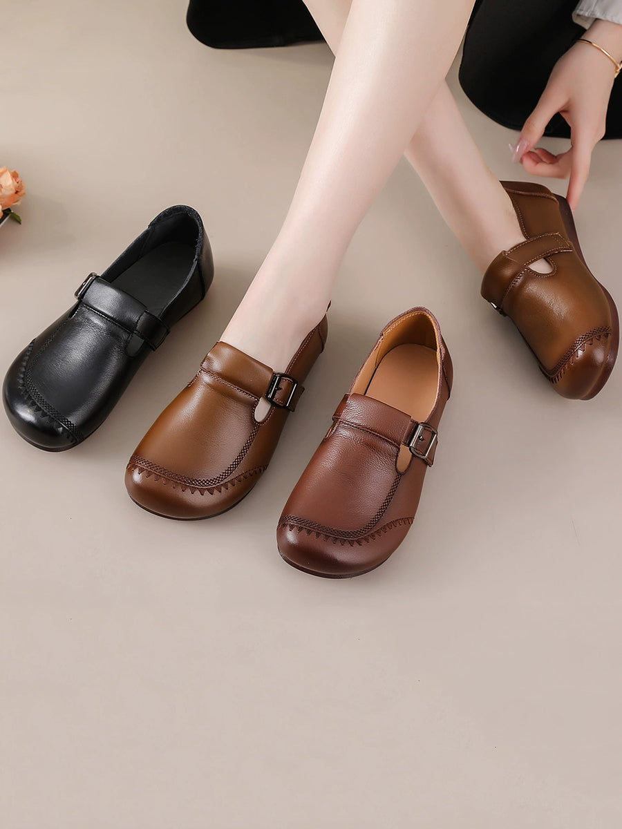 Zapatos planos casuales de piel auténtica de color puro para mujer