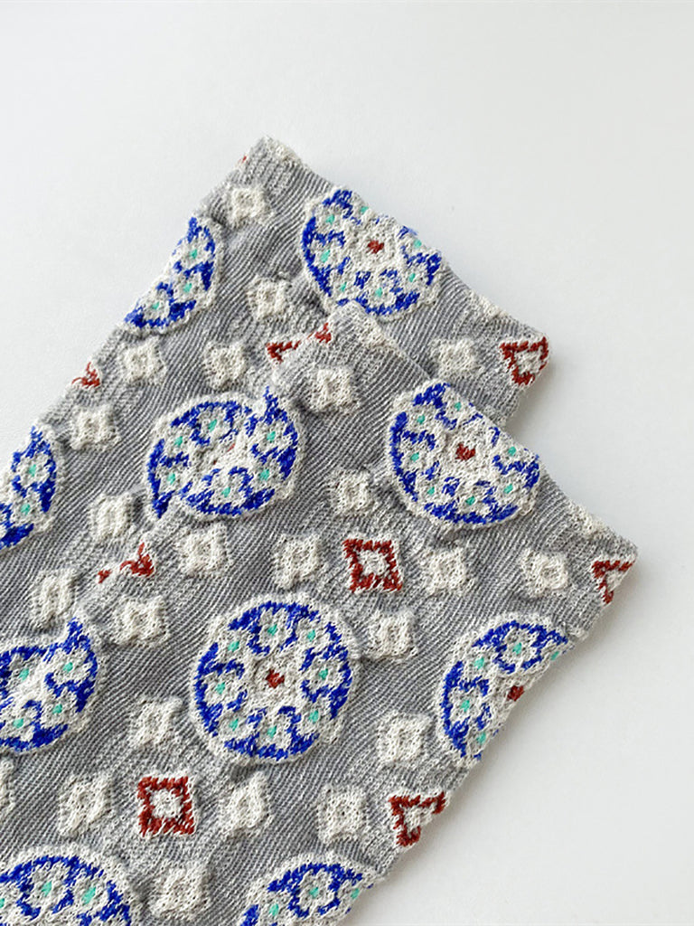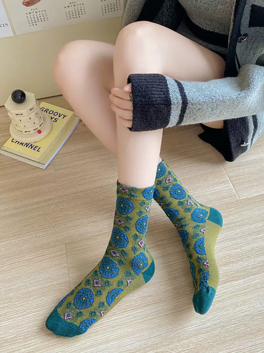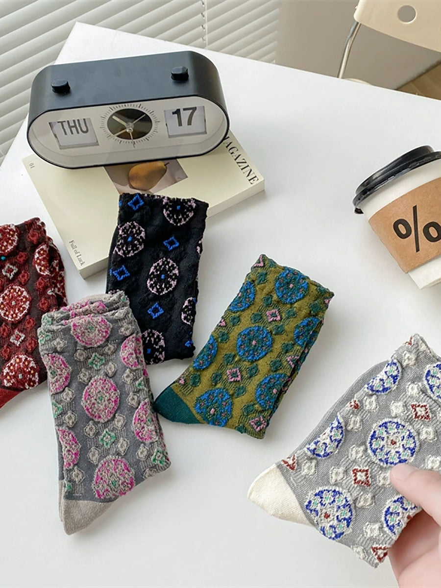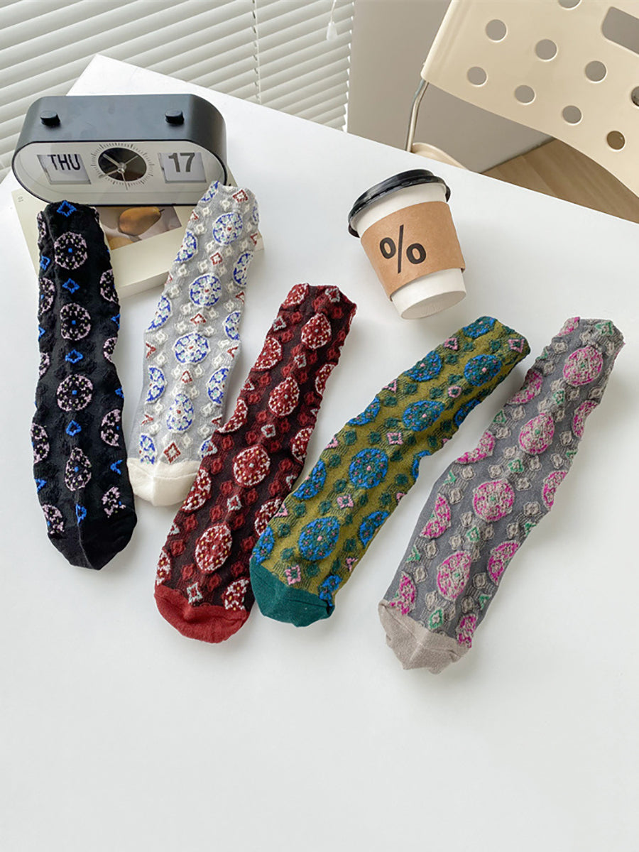 5 pares de calcetines vintage de algodón jacquard con círculos para mujer