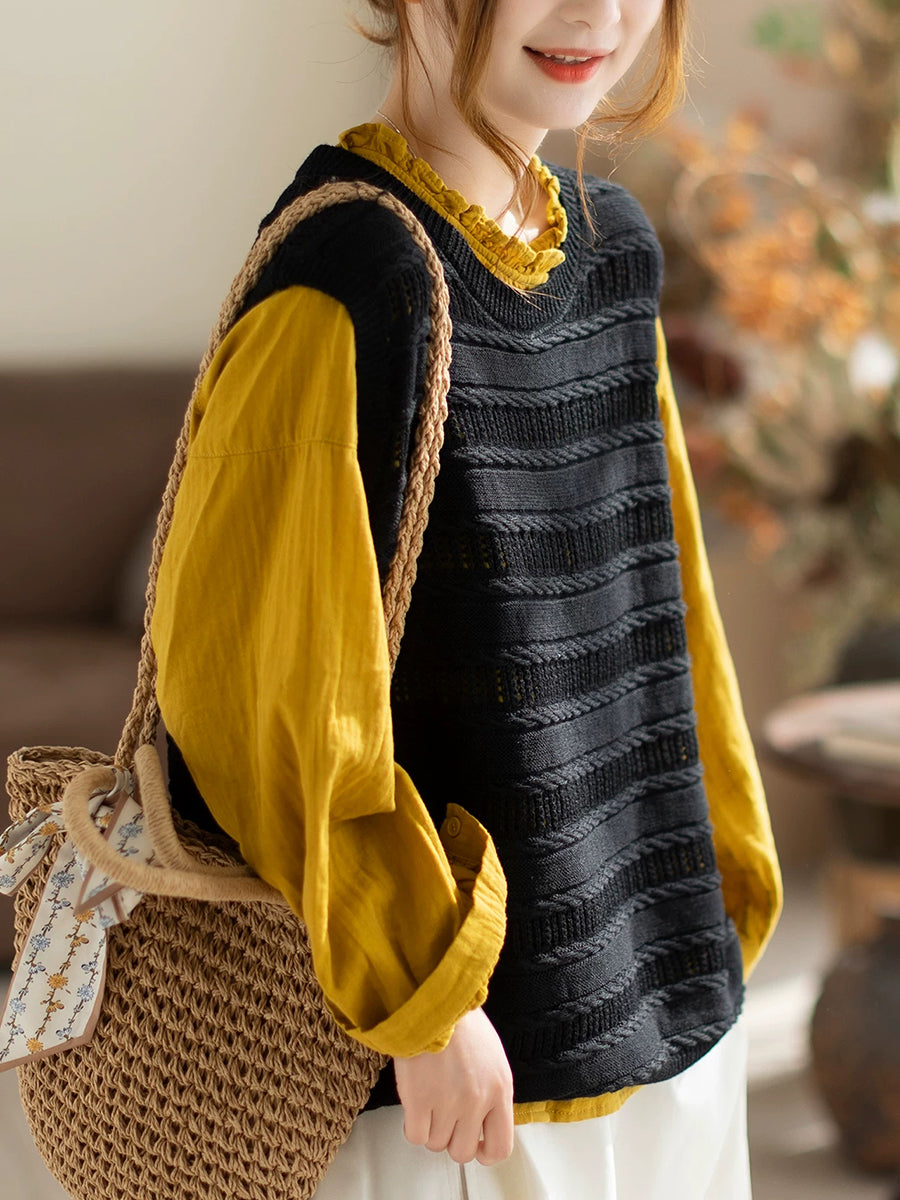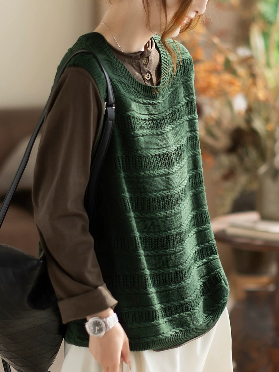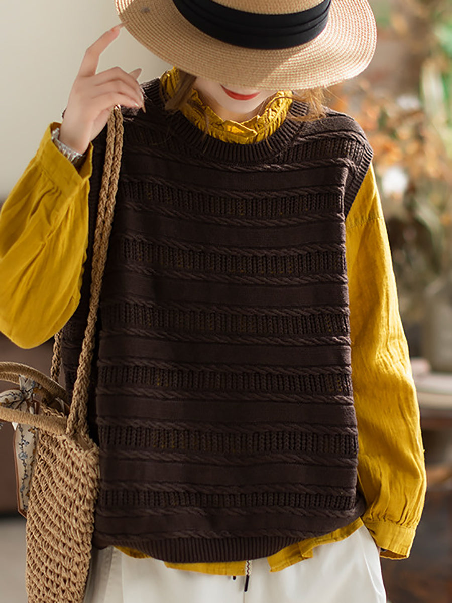 Chaleco de punto con cuello redondo de color puro y estilo artístico de primavera para mujer