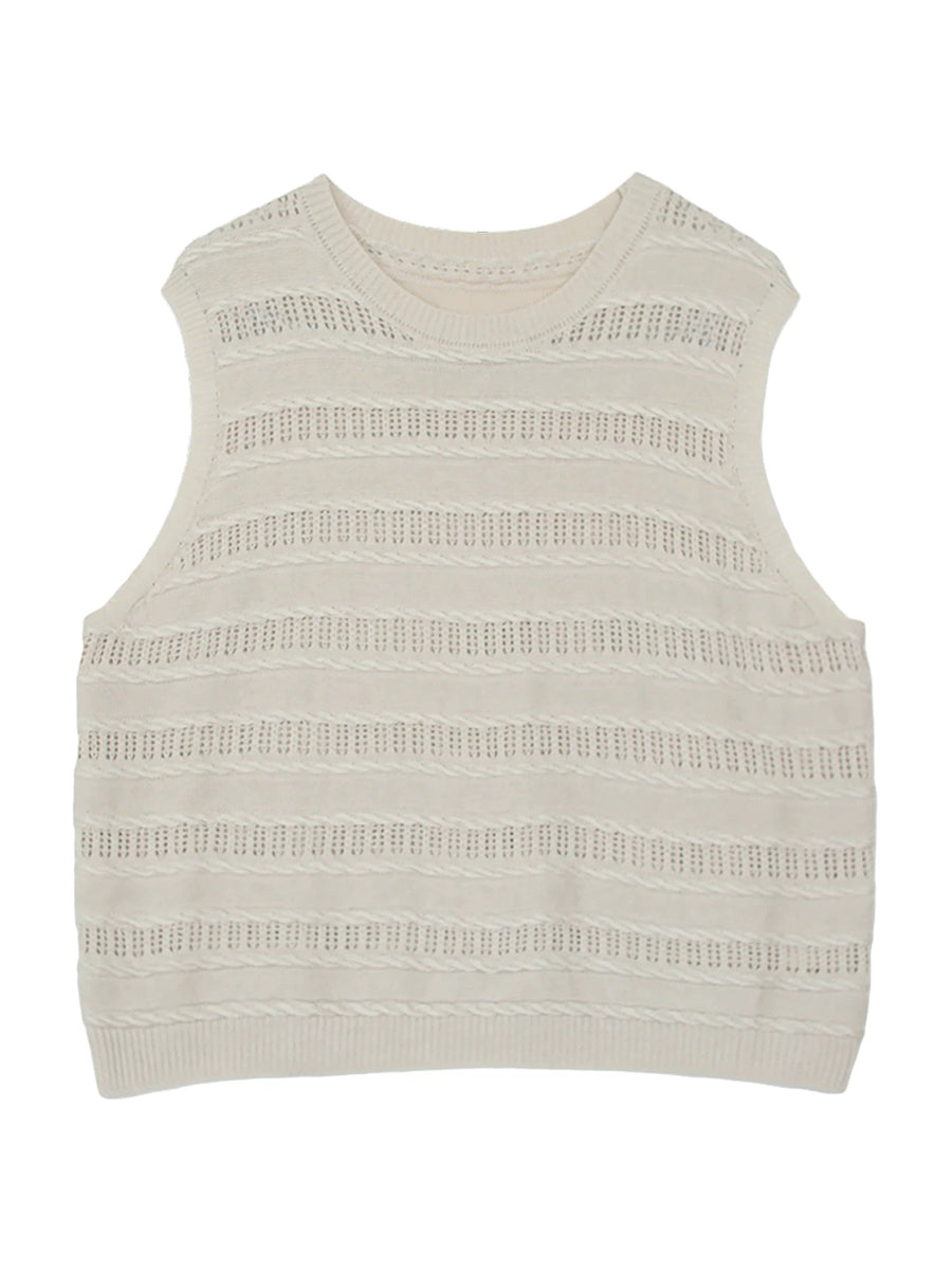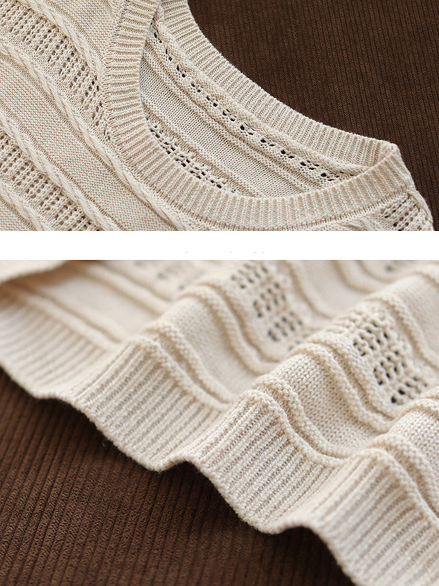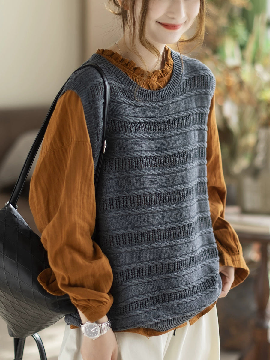 Chaleco de punto con cuello redondo de color puro y estilo artístico de primavera para mujer