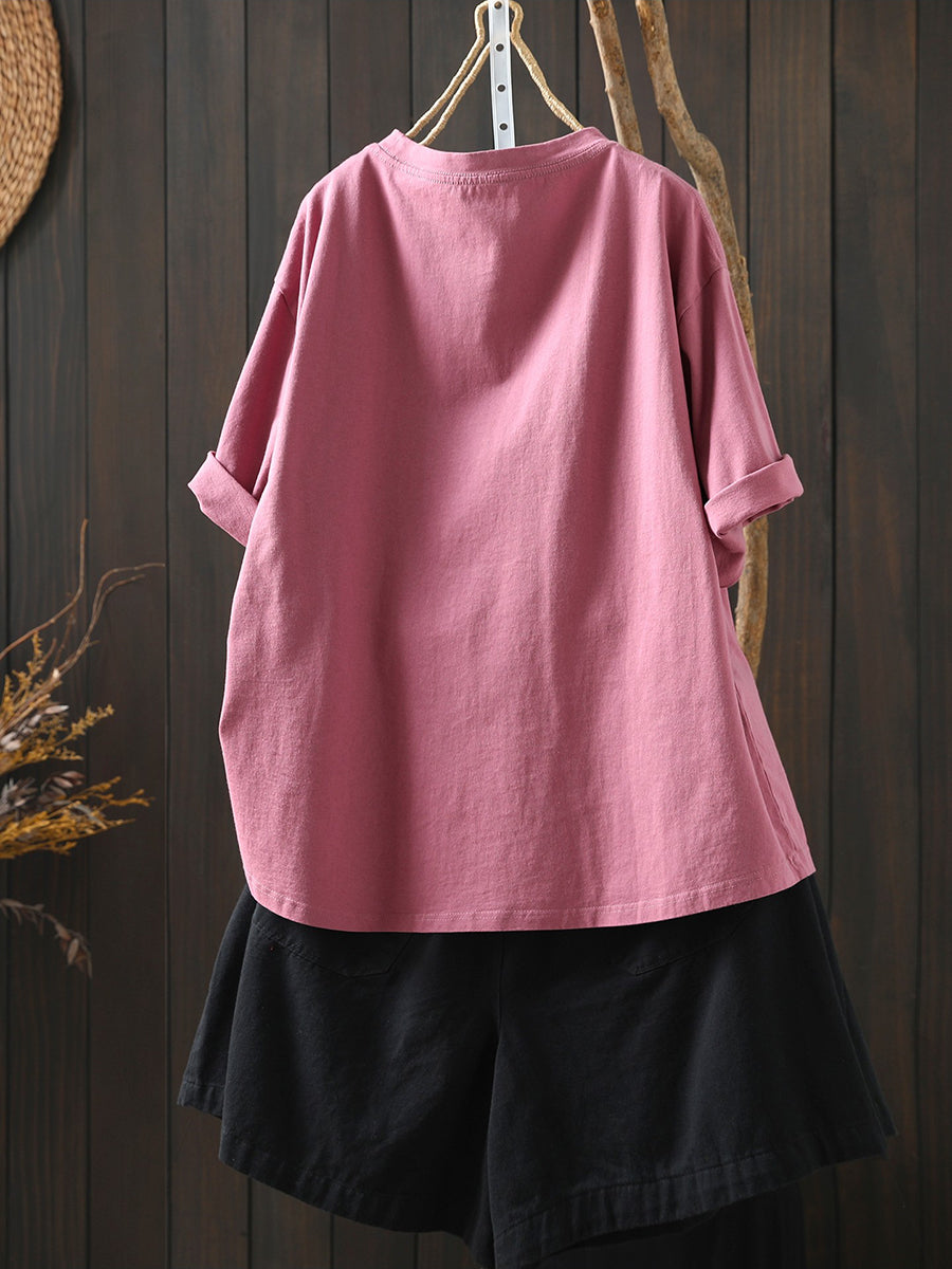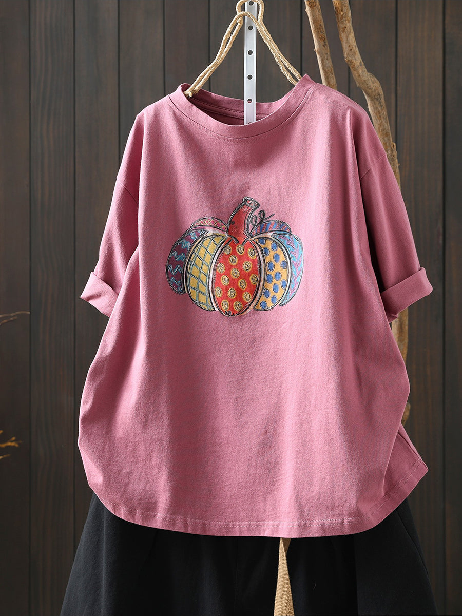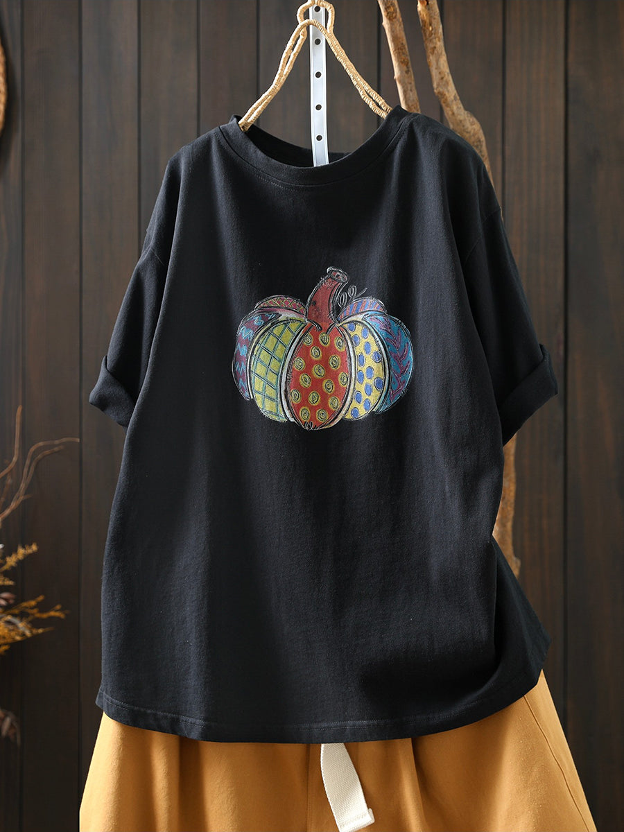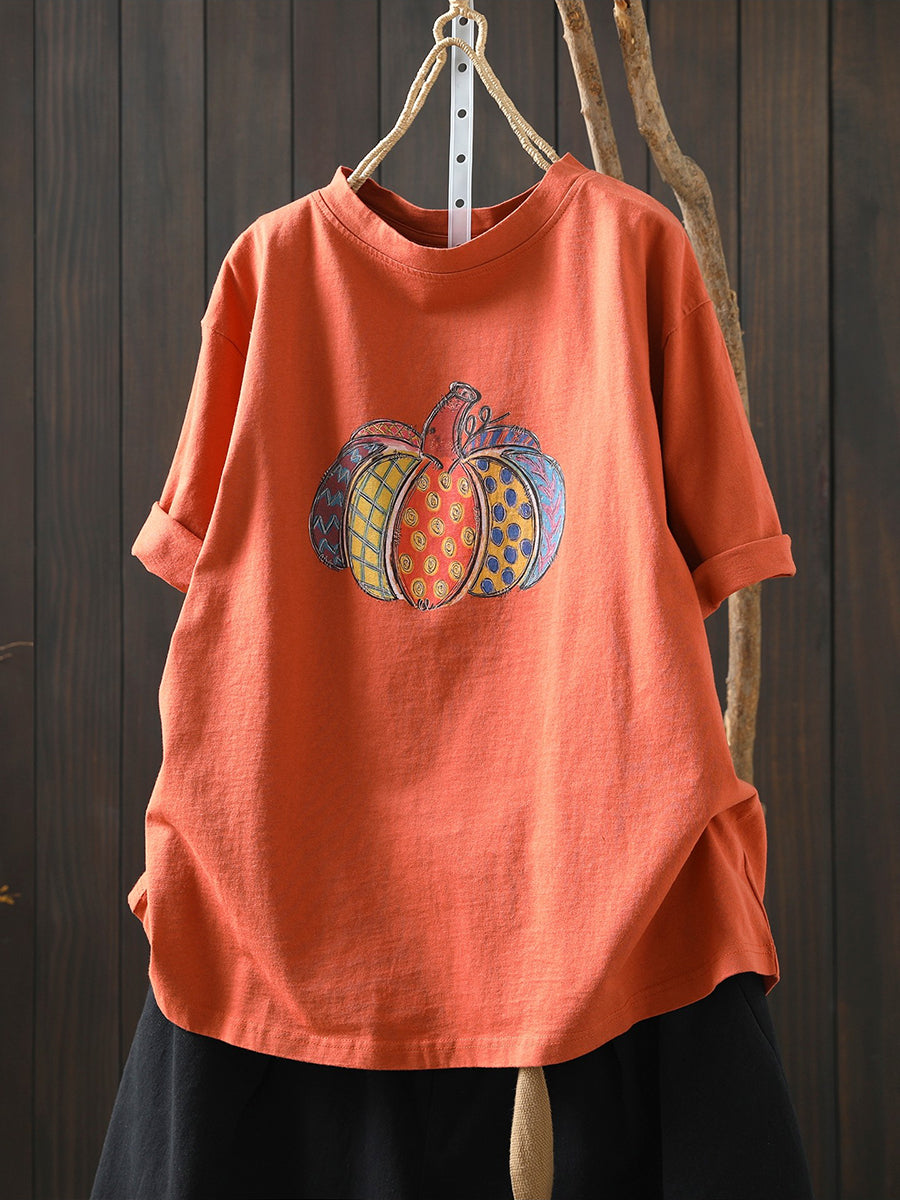 Camisa de algodón con estampado de calabaza artística de verano para mujer
