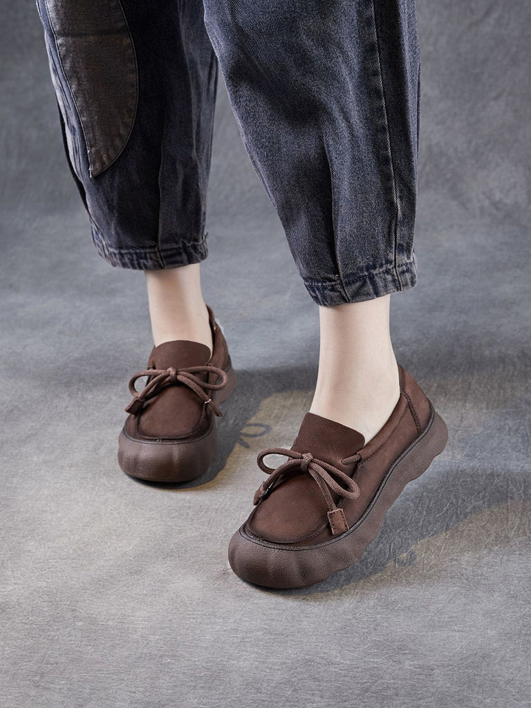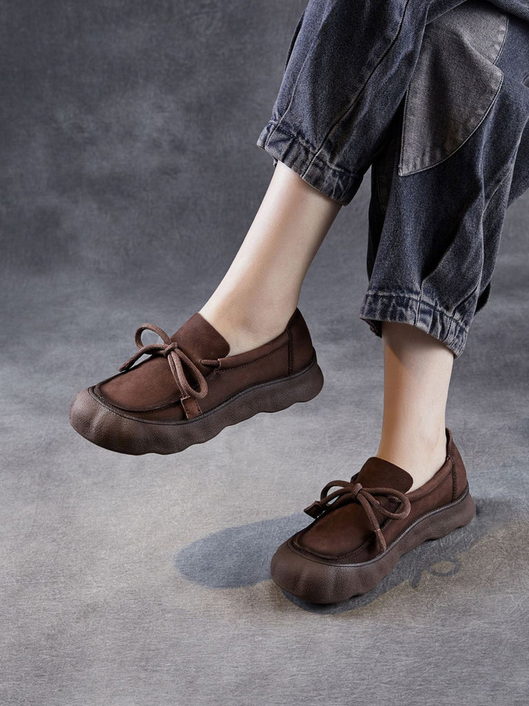 Zapatos planos vintage con correa de cuero genuino para mujer