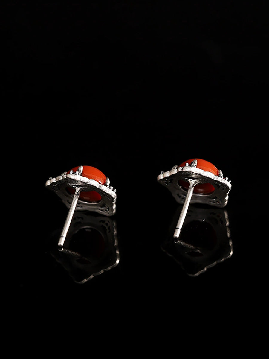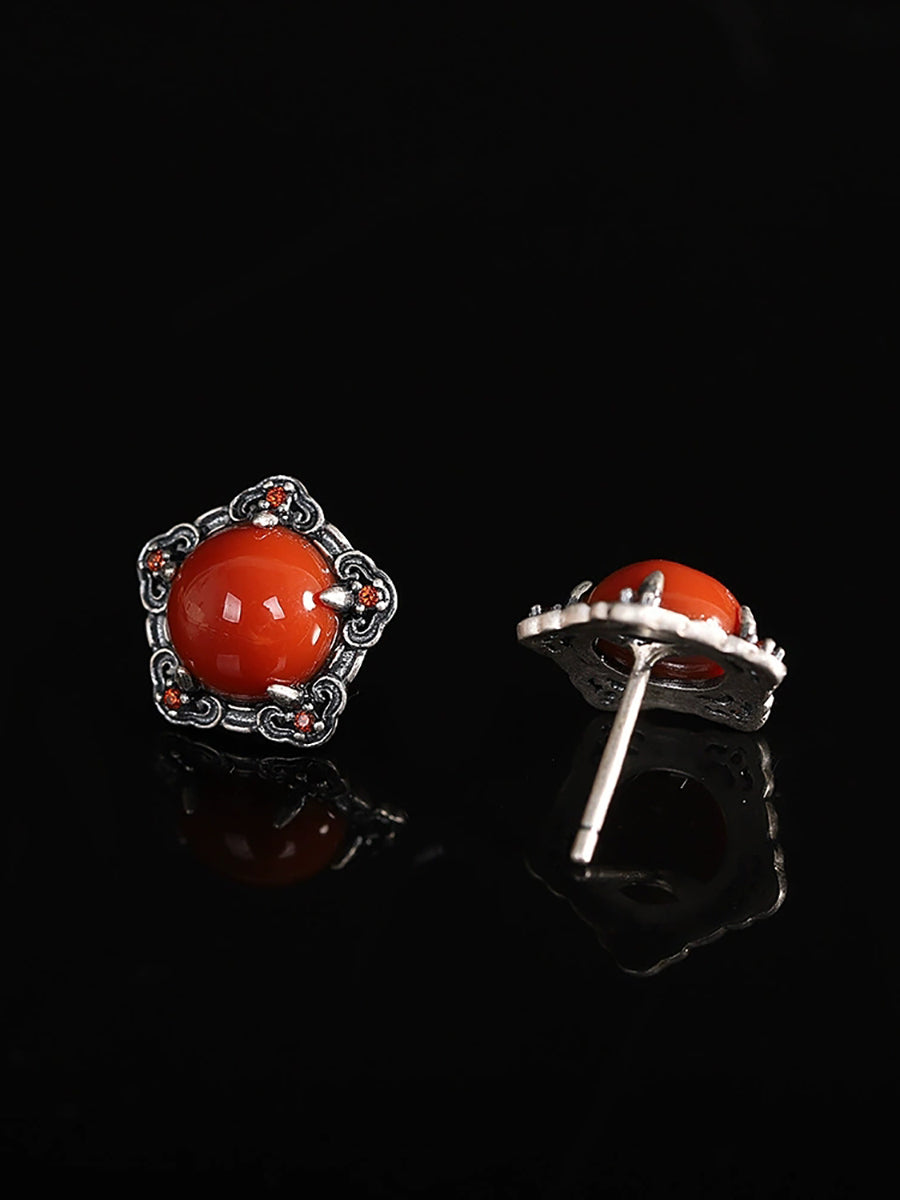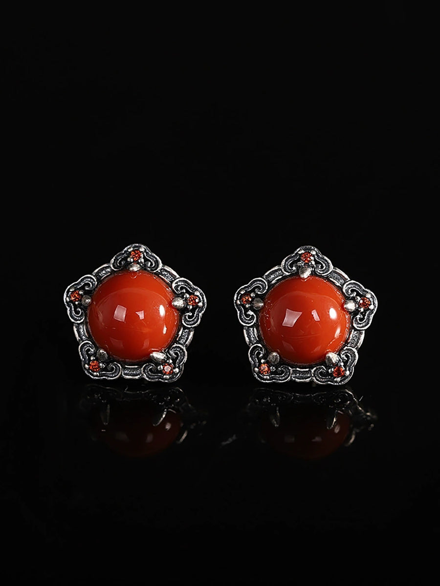 Pendientes vintage de plata S925 con ágata roja para mujer