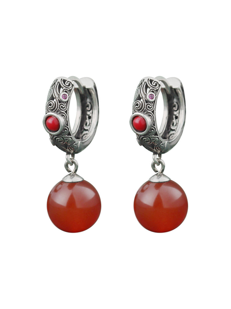 Pendientes vintage de plata con baño de cobre y ágata roja