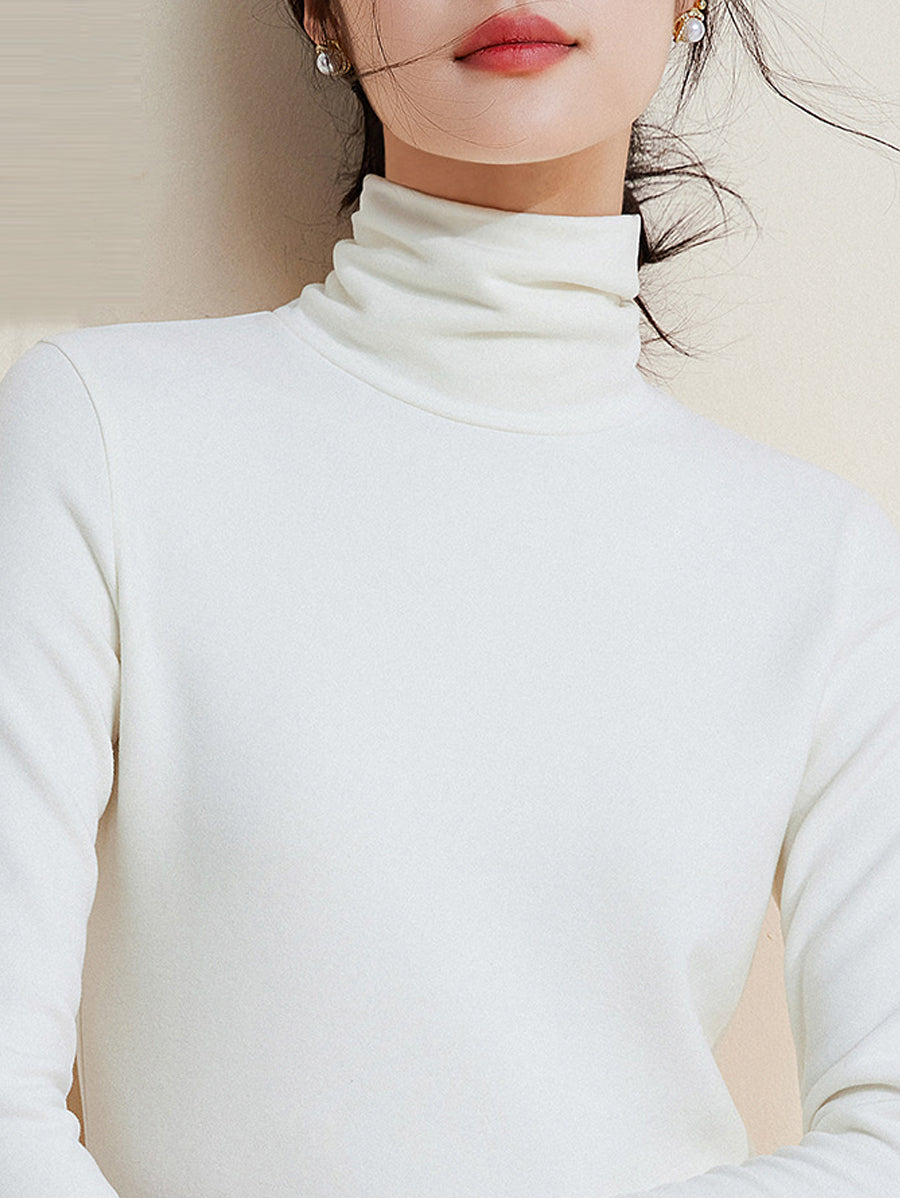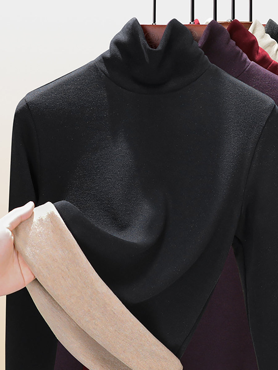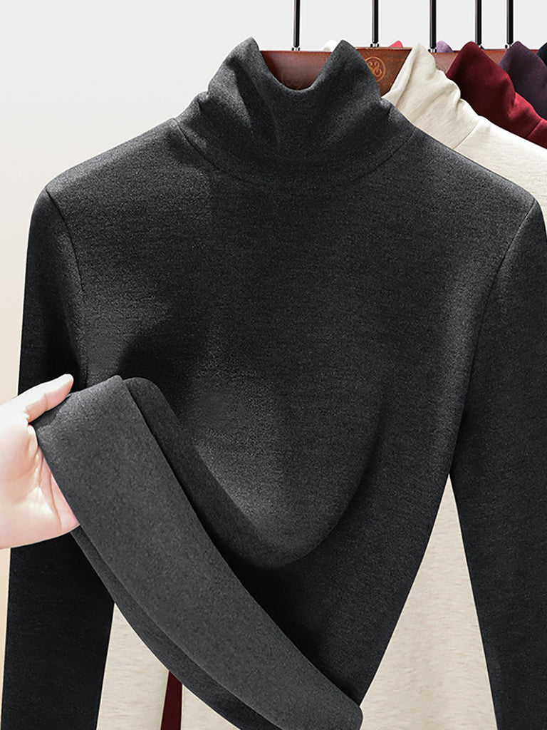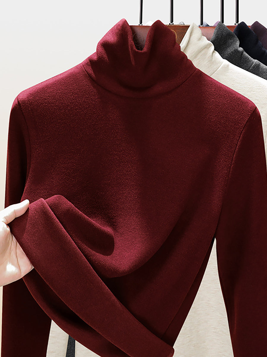 Blusa de cuello alto cálida de color puro de invierno para mujer