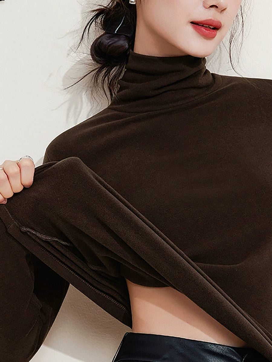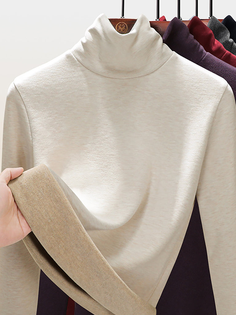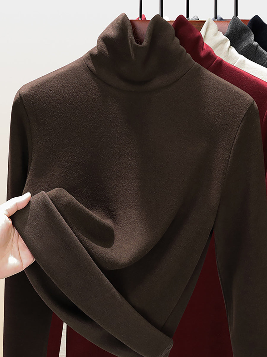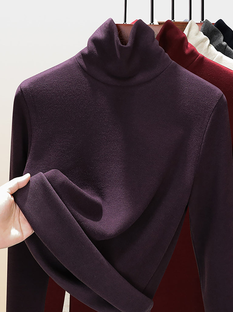 Blusa de cuello alto cálida de color puro de invierno para mujer
