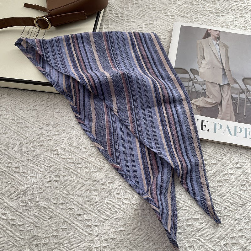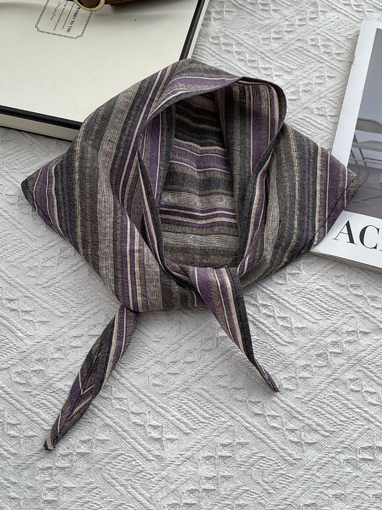 Bufanda triangular vintage de rayas 100 % algodón para mujer