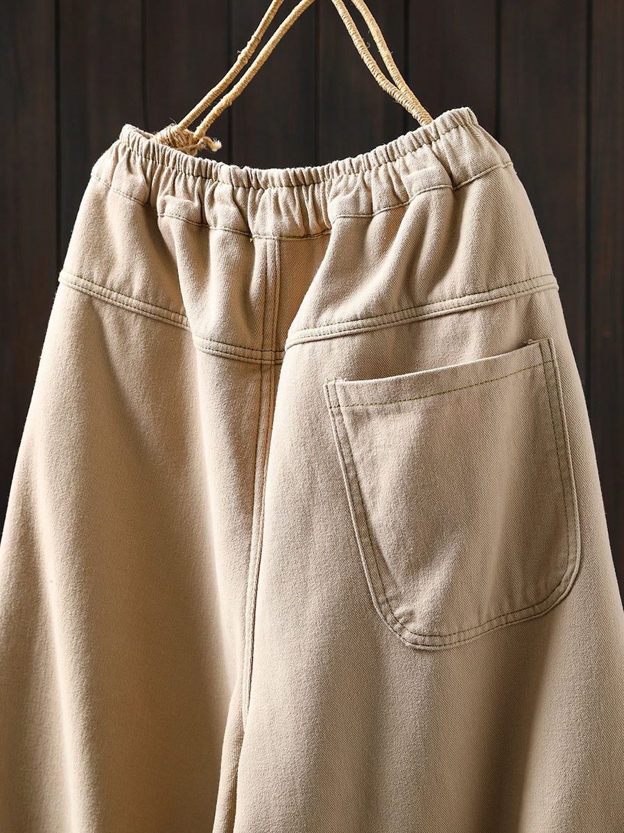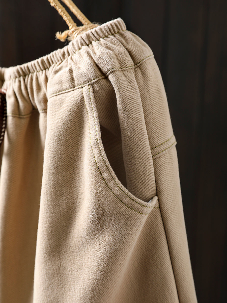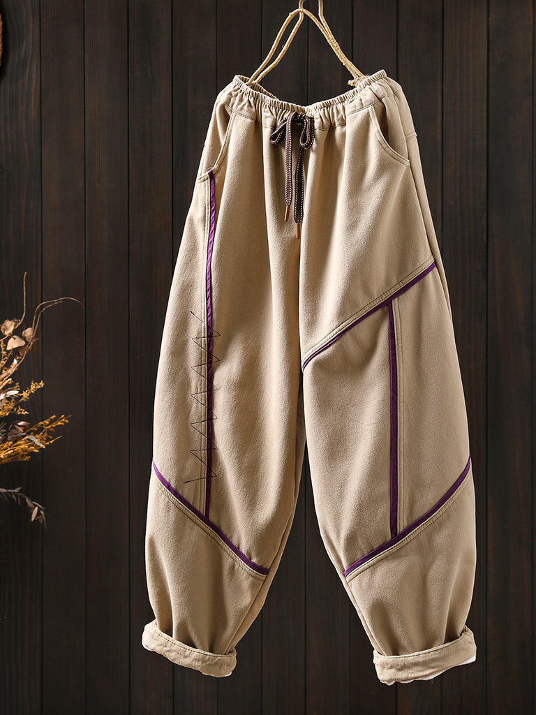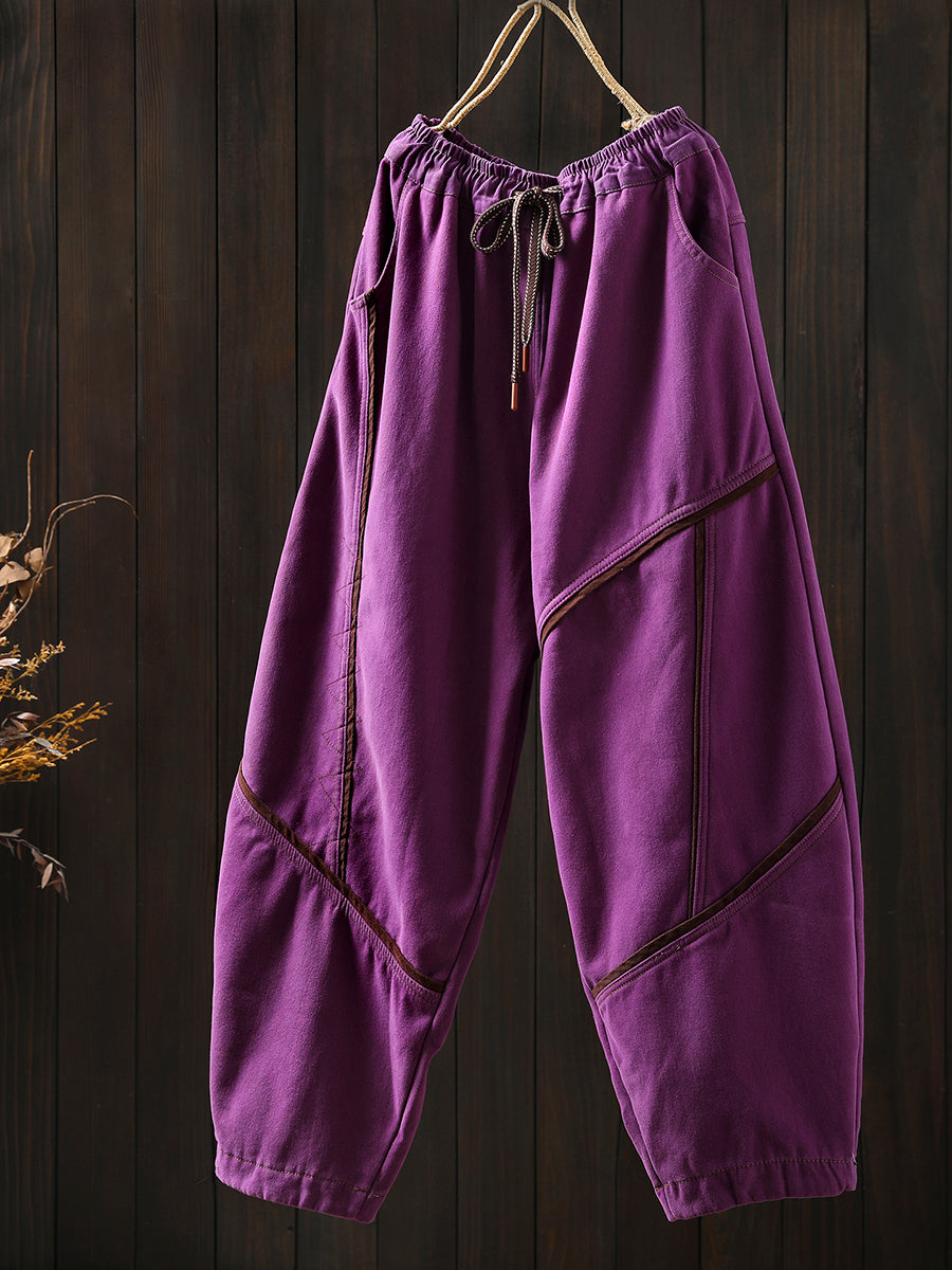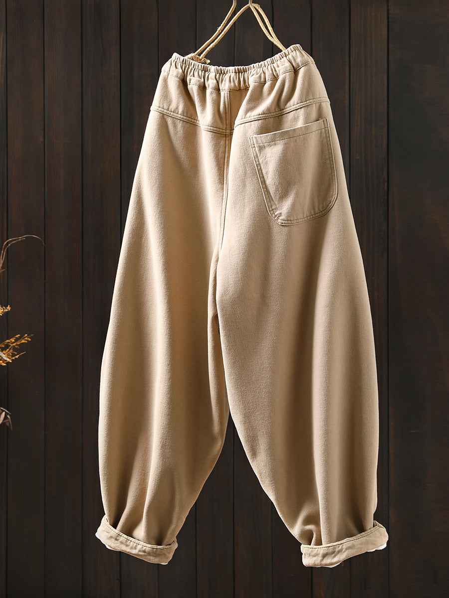 Pantalones tipo harem de algodón con forro polar y diseño vintage para mujer, ideales para el invierno.