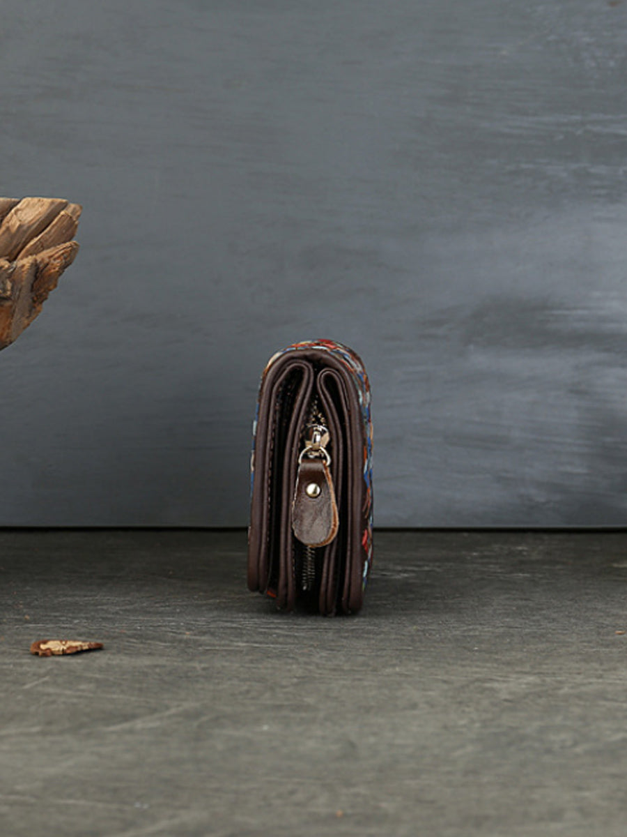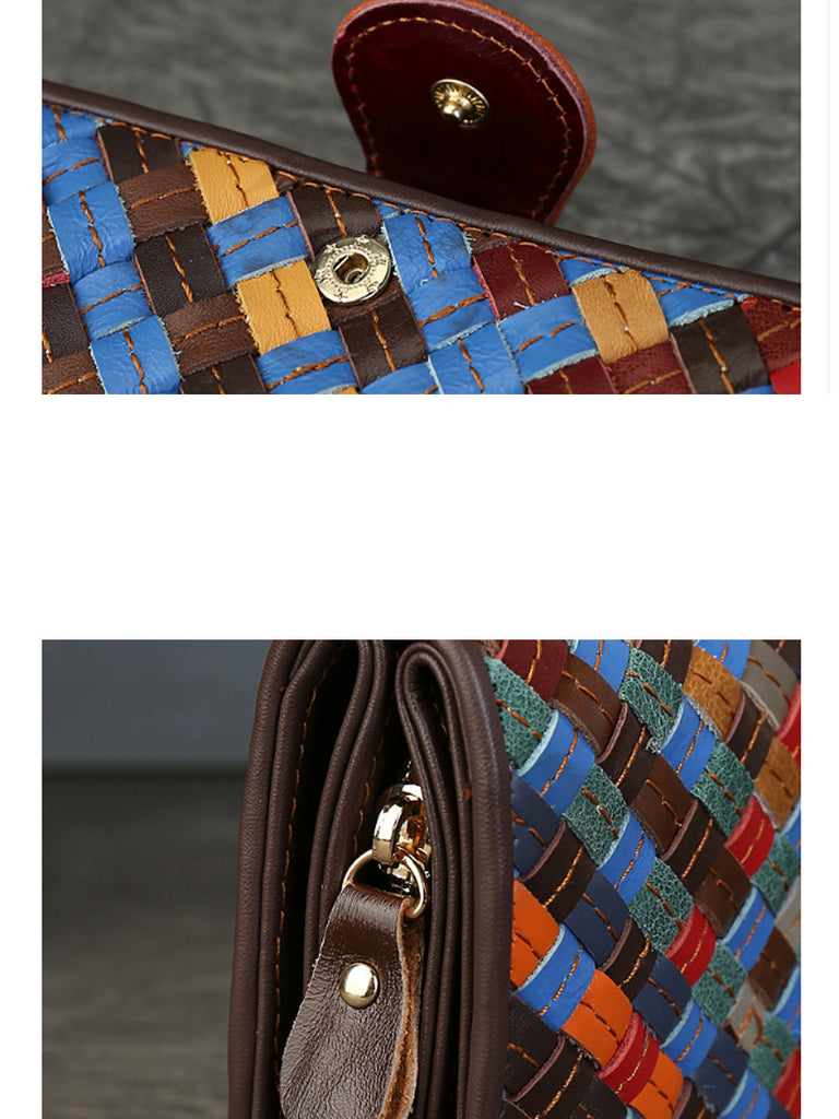 Cartera multifunción de cuero tejido de colores
