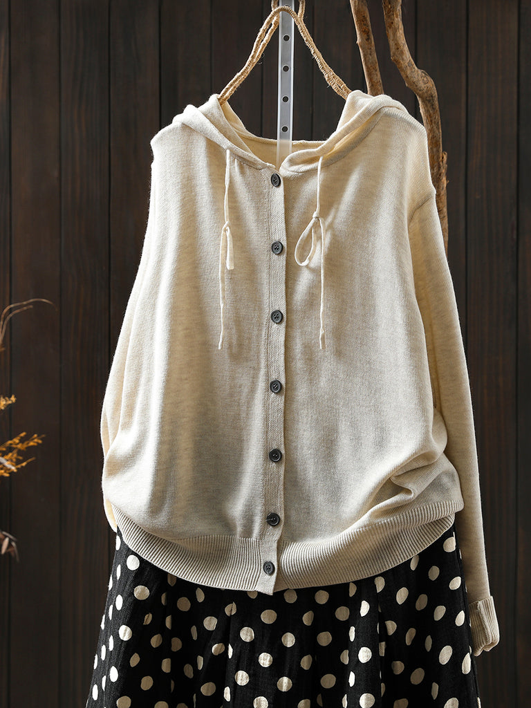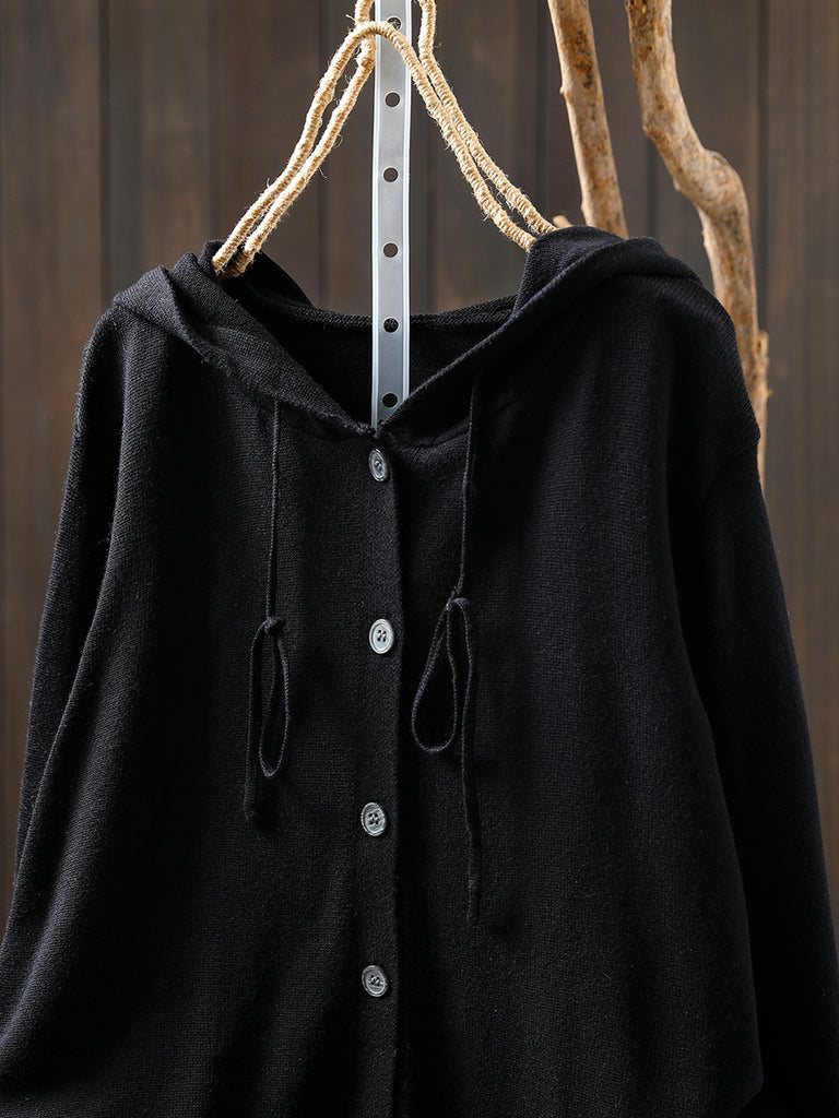 Blusa de punto con capucha de color puro informal de otoño para mujer