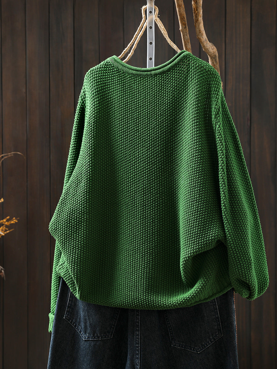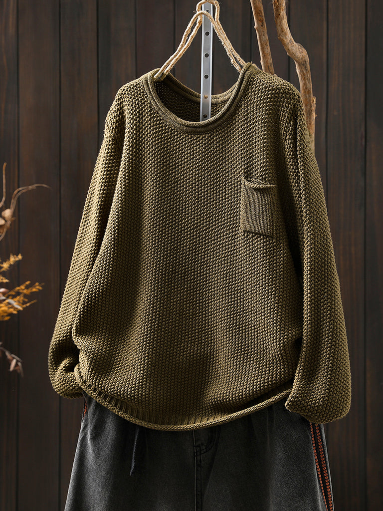 Camisa de punto 100 % algodón con cuello redondo y color puro para mujer de otoño