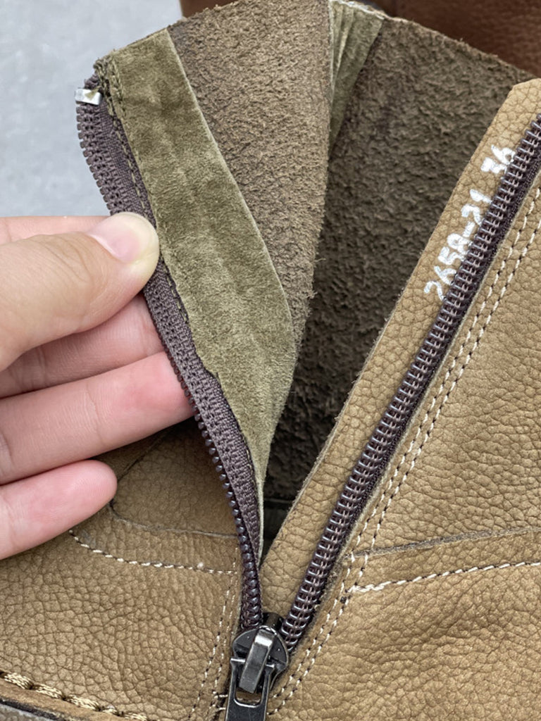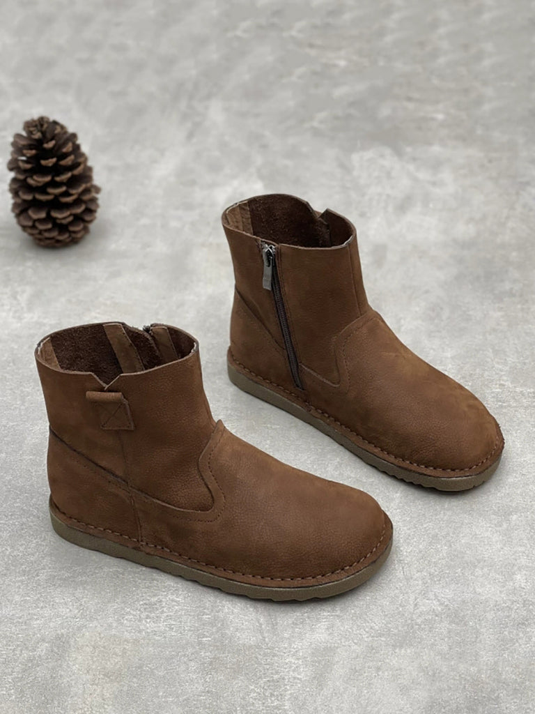 Botines planos vintage de piel auténtica para mujer