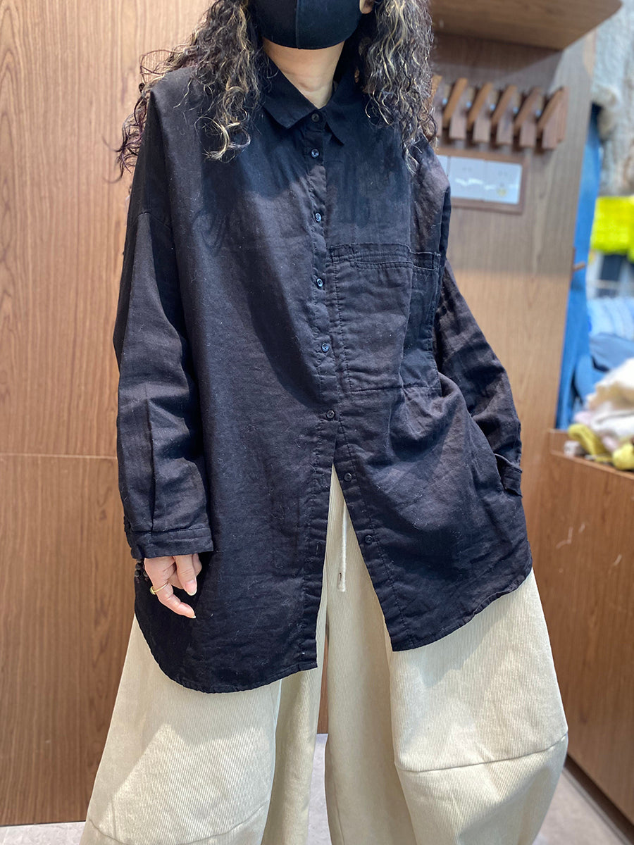 Camisa de cuello vuelto de color puro y estilo artístico de primavera para mujer