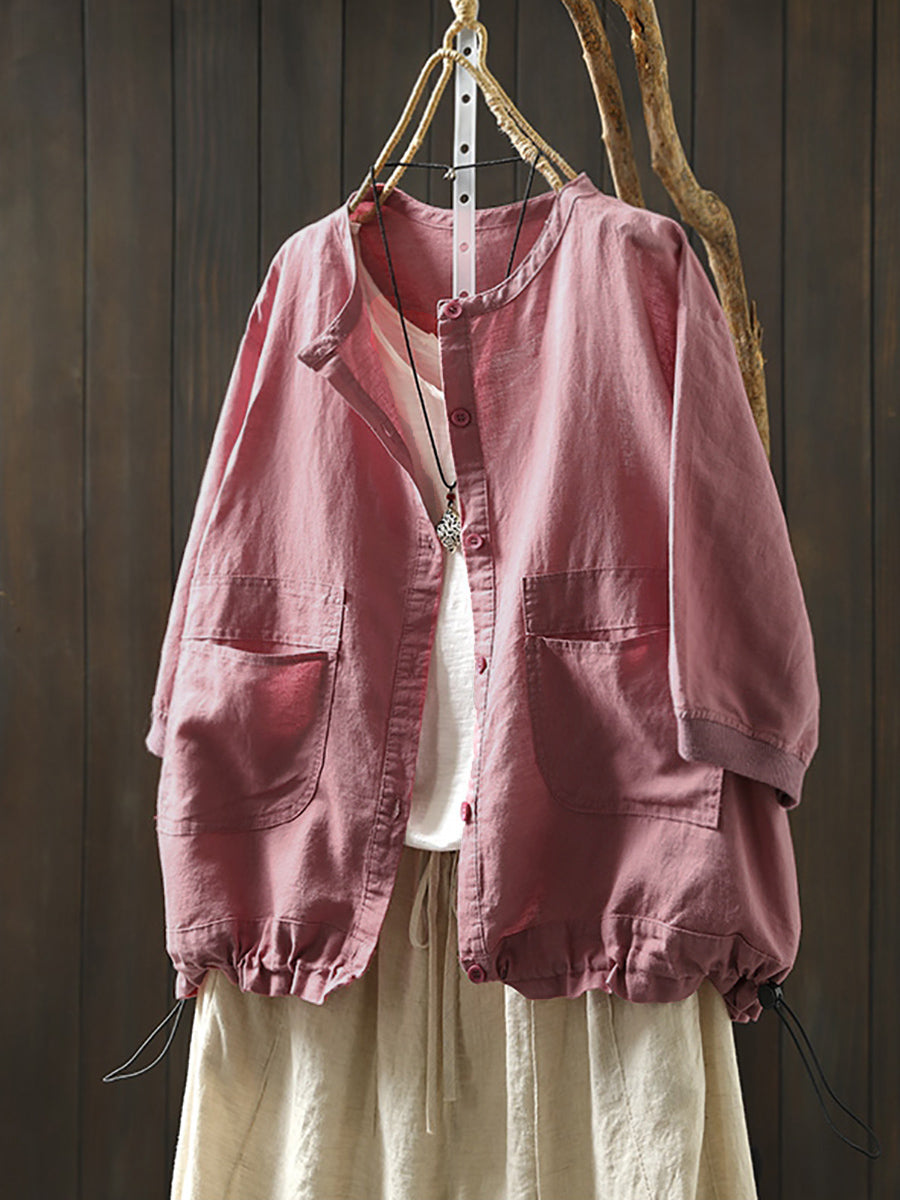 Camisa de verano con cuello redondo y estampado artístico de color puro para mujer